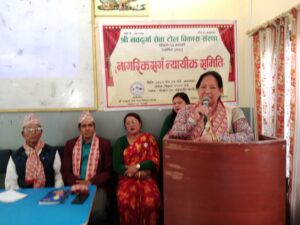 कार्यक्रममा पोखरा महानगर न्यायिक समिति सदस्यद्वय कालिदास पोखरेल, रजनी परियार र न्यायिक समितिका अभिलेख संरक्षक सोम लम्सालले गठन प्रक्रिया र समितिको अधिकार क्षेत्र, न्याय सम्पादन र असल अभ्यासका बारेमा प्रशिक्षण दिनुभएको थियो । नवदुुर्गा टोल विकास संस्थाका अध्यक्ष डम्बरजंग गुरुङको अध्यक्षतामा भएको कार्यक्रममा नवदुुर्गा टोल विकास संस्थाका उपाध्यक्ष श्रीधर अधिकारी,भद्रकालि माध्यमिक विद्यालयका प्रधानाध्यापक यदुराज पंगेनी, नवदुुर्गा आमा समुहका डिलमाया गुुरुङ र नवदुुर्गा टोल विकास संस्थाका सचिव संगीता विकले बोल्नुुभएको थियो ।