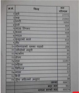 उहाँका निकटतम प्रतिद्धन्दी नेपाली कांग्रेसका उम्मेद्वार डम्बरबहादुर खड्काले २१ हजार ९४२ मत प्राप्त गर्नुभएको थियो । प्रतिनिधिसभा सदस्यका लागि खड्काको इलाम–२ मा यो दोस्रो पटकको पराजय हो । यस अघि स्वर्गीय सुवासचन्द्र नेम्वाङ सँग पनि खड्का ११४ मतले पराजित हुनु भएको थियो ।