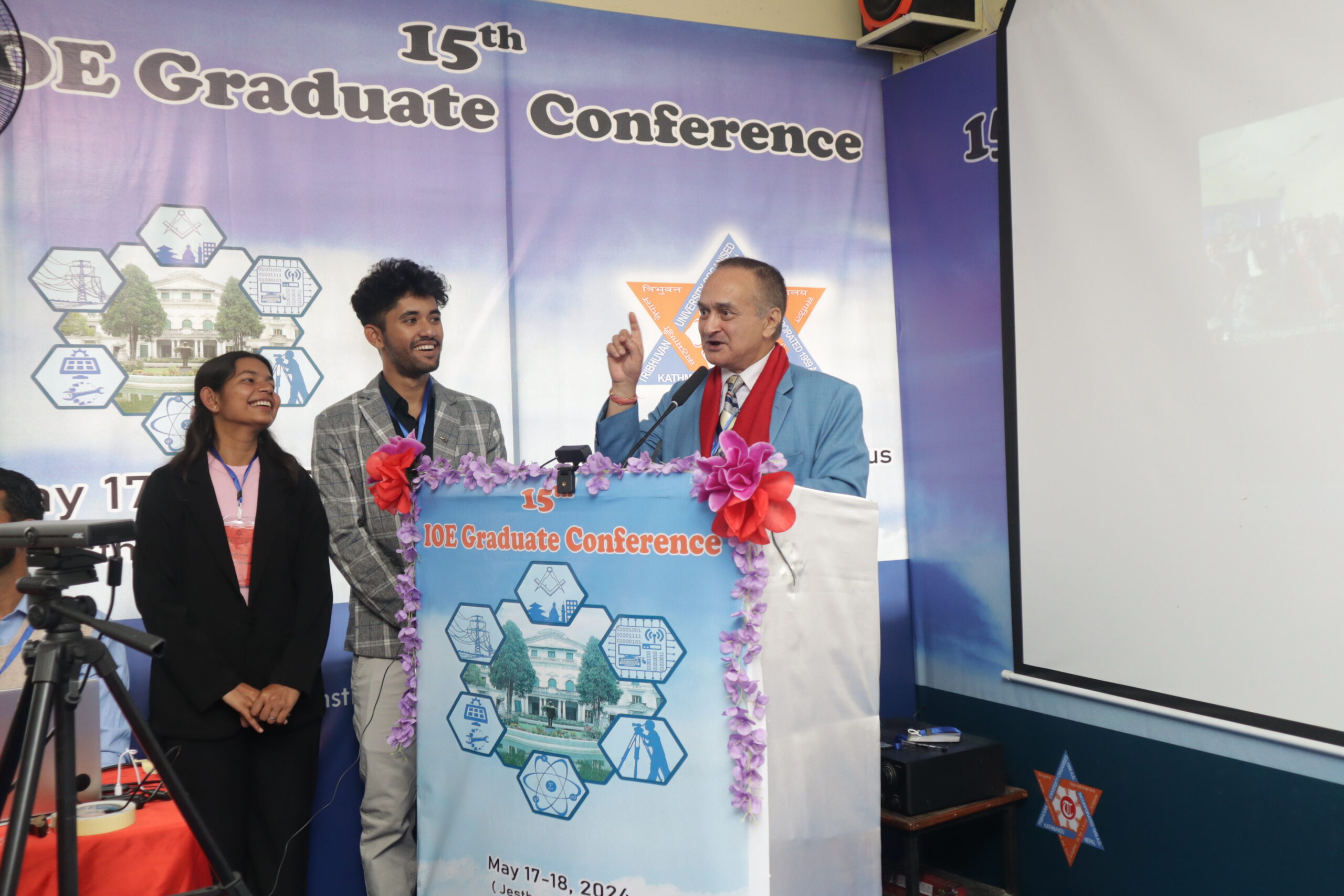पश्चिमान्चल क्याम्पसमा सम्पन्न यस पन्ध्रौँ आइ.ओ. इ. ग्राजुयट सम्मेलनमा पोखरा विश्वविद्यालय, स्कुल अफ इन्जिनियरिङ्गका प्रध्य्यापक डा. विनय कुमार मिश्र तथा भारतीय प्राद्योगिकी संस्थान, इन्दोर, भारतका प्राध्यापक डा. नीलिमा सत्यमले मूल कार्यपत्र (कि नोट पेपर) प्रस्तुत गर्नुभएको थियो। सम्मेलनको समानान्तर सेसन अन्तर्गत संचालित इन्जिनियरिङ्ग तथा विज्ञान प्रविधिका विभिन्न विधाका ५१ वटा पेपरहरुको प्रस्तुतीकरणमा विद्यार्थी तथा शिक्षकहरुको सक्रिय सहभागिता रहेको थियो। त्रिभुवन विश्वविद्यालय, इन्जिनियरिङ्ग अध्ययन संस्थानका डिन प्रा. डा. शशीधर राम जोशीको अध्यक्षतामा सम्पन्न सम्मेलनको उद्घाटन सत्रमा त्रिभुवन विश्वविद्यालयका शिक्षाध्यक्ष प्रा. डा. खड्ग केसीले इन्जिनियरिङ्ग अध्ययन संस्थानद्वारा सञ्चालित अनुसन्धानात्मक गतिविधिहरुको प्रसंशा गर्दै अरु संकाय र अध्ययन संस्थानहरुमा पनि नियमित ग्राजुयट सम्मेलनको आवश्यकता रहेको औंल्याउनुभयो।