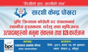 पोखरा । सारथी केन्द्रले पोखरामा कोशेली घर सञ्चालनमा ल्याउने भएको छ । केन्द्रले राष्ट्रिय स्तरको सृष्टि क्रियसन कोशेलीघर सञ्चालन गर्न लागेको हो । कोशेलीघरमा स्थानियस्तर मा उत्पादित हस्तकला, घरेलु तथा कृषिजन्य उत्पादन राखिने केन्द्रका अध्यक्ष शान्ती उदास श्रेष्ठले जानकारी दिनुभएको छ ।