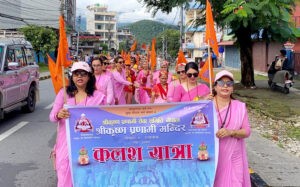 पोखरा ।एक महिने श्रीमदवीतक चर्चा एवं श्रीकृष्ण कथा प्रवचनको पूर्व सन्ध्यामा पोखरामा कलश यात्रा निकालिएको छ । श्रीक कृष्ण प्रणामी सेवा समिति पोखरा ८ रत्नचोकको आयोजनामा आगामी श्रावण १० श्रावण कृष्ण पञ्चमी देखि भदौ १० गते भाद्र कृष्ण अष्टमी सम्म श्रीकृष्ण प्रणामी मन्दिर रत्नचोकमा आयोजना गर्न लागेको श्रीमदवीतक चर्चा एवं श्रीकृष्ण कथा प्रवचनको पूर्व सन्ध्यामा बुधवार पोखरामा कलश यात्रा सम्पन्न भएको हो ।