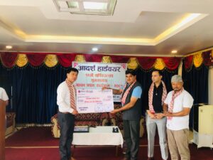 ब्यवसायको छोटो समयमा आर्दश हाडवर्यसले प्राप्त गरेको सफलतालाई मध्यनजर राख्दै संचालन विजय गुरुङले सामाजिक उत्तरदाईत्वका क्षेत्रमा वार्षिक रुपमा विभिन्न कार्यक्रम गर्दै सहयोग गर्दै आएको यस वर्ष शनिवार एक कार्यक्रमका विच लेखनाथ पत्रकार मञ्चलाई सहयोग गरेका हुन् ।