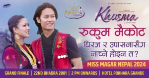 पोखरा, भदौ ।निट डेन्टल केयर प्रिजेन्ट्स सातौं मिस मगर नेपाल–२०२४ को ग्राण्ड फिनालेमा चलचित्र खुस्माका नायक तथा नायिका आउने भएका छन् ।पोखरा १७ स्थित होटल ग्राण्डमा यही शनिबार (२२ गते) हुने फिनालेमा नायक धिरज मगर र नायिका उपासना सिंह ठकुरी सहभागि हुने टिम संयोजक प्रियंका गर्बुजामगरले जानकारी दिइन् । उनका अनुसार उक्त दिन उनीहरुले रुकुमको मैकोटमा निर्माण भएको चलचित्र खुस्माको प्रचारप्रसार गर्नेछन् ।