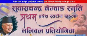 पोखरा, भदौ ।नेकपा एमालेनिकट विद्यार्थी संगठन अखिल नेपाल राष्ट्रिय स्वतन्त्र विद्यार्थी युनियन गण्डकीको आयोजनामा भलिबल प्रतियोगिता हुने भएको छ । पोखरामा आउँदो भदौ २७ देखि ३१ गतेसम्म सुवासचन्द्र नेम्वाङ स्मृति प्रथम प्रदेशस्तरीय पुरूष खुल्ला भलिबल प्रतियोगिता हुन लागेको हो ।