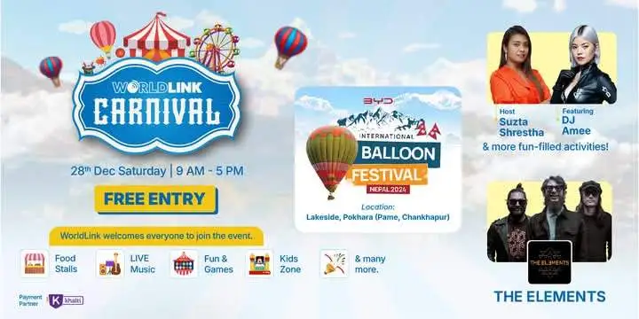 पोखरा, ९ पुस, नेपालकै अग्रणी इन्टनेट सेवा प्रदायक कम्पनी, वर्ल्डलिंकले पोखरामा ‘कार्निभल’को आयोजना गर्ने भएको छ । सो कार्निभलमा विभिन्न प्रकारका फुड स्टलहरु, बालबालबालिकाको लागि खेलहरु साथै विभिन्न प्रकारमा रमाइला खेलहरु रहने वर्ल्डलिंकले जनाएको छ ।