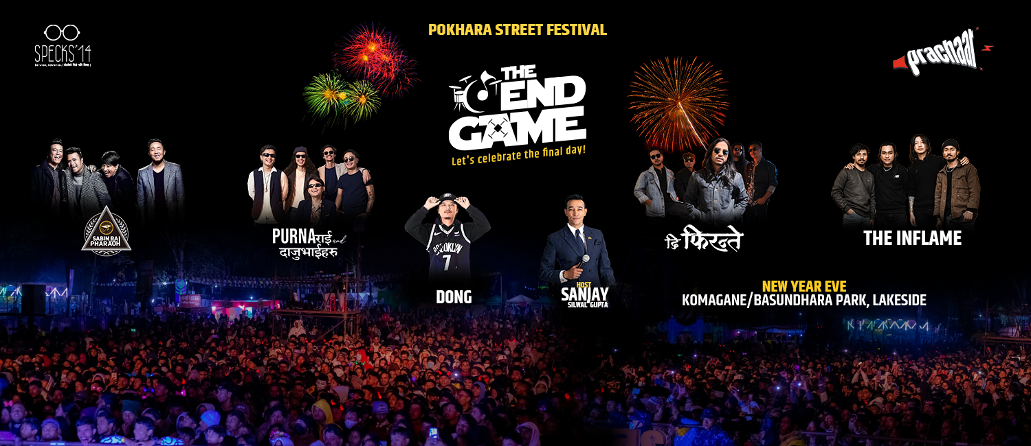 ‘द इण्ड गेम’ नाम दिएर अंग्रेजी नयाँ वर्ष २०२५ लाई स्वागत गर्न लेकसाइडको बसुन्धरा पार्क/कोमागाने पार्कमा डिसेम्बर ३१ (पुस १६)मा कार्यक्रम हुन लागेको हो । प्रचार नेपाल र स्पेक्स–१४ को आयोजना र आर्बिटरी इभेन्टससँगको सहकार्यमा कार्यक्रम हुने भएको हो ।