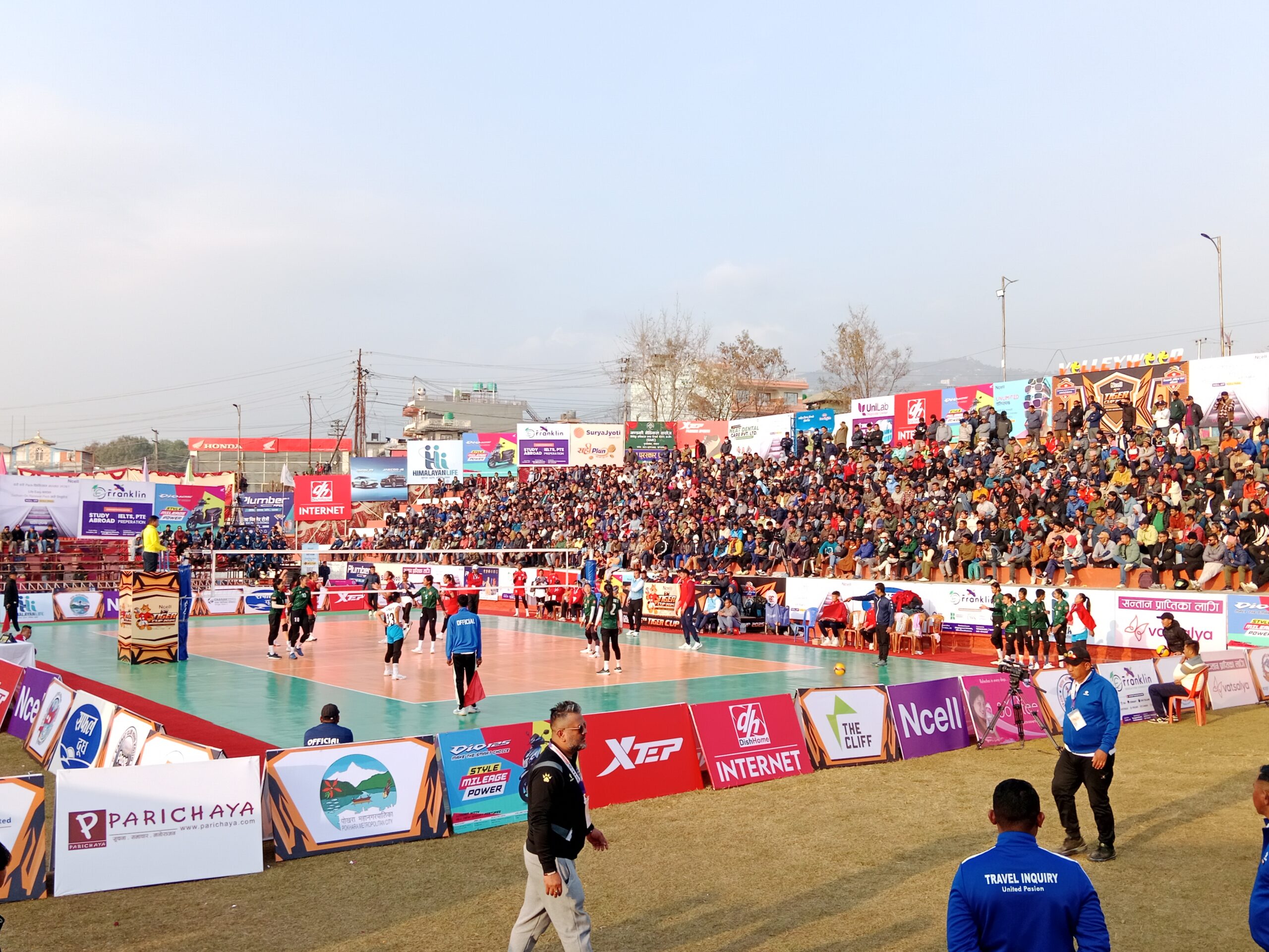 पहिलो सेटमा २२–२० को अग्रता जोगाउन नसक्दा आयोजक टोली २३–२५ ले गुमाउन पुग्यो । दोस्रो सेटमा आर्मीले २५–२२ ले आफ्नो पक्षमा पा¥यो । तेस्रो सेटमा भने उत्कृष्ट प्रदर्शन गर्दै आयोजक टोलीले २५–२१ ले जित हासिल ग¥यो । त्यसपछि रेफ्रि टहलसिंह थापाले दुई टोलीका कप्तानसँग छलफल गरी खेल स्थगित गरे । खराब प्रकाशका लागि खेल स्थगित गरिएको हो । अब उक्त आइतबार गर्ने रेफ्रि थापाले बताए । ‘पर्सिदेखि लिग सुरु हुन्छ । भ्याएसम्म भोलि नै गर्ने हो । सुरुमा गर्ने कि कतिबेला गर्ने छलफल भइराखेको छ,’ उनले भने ।