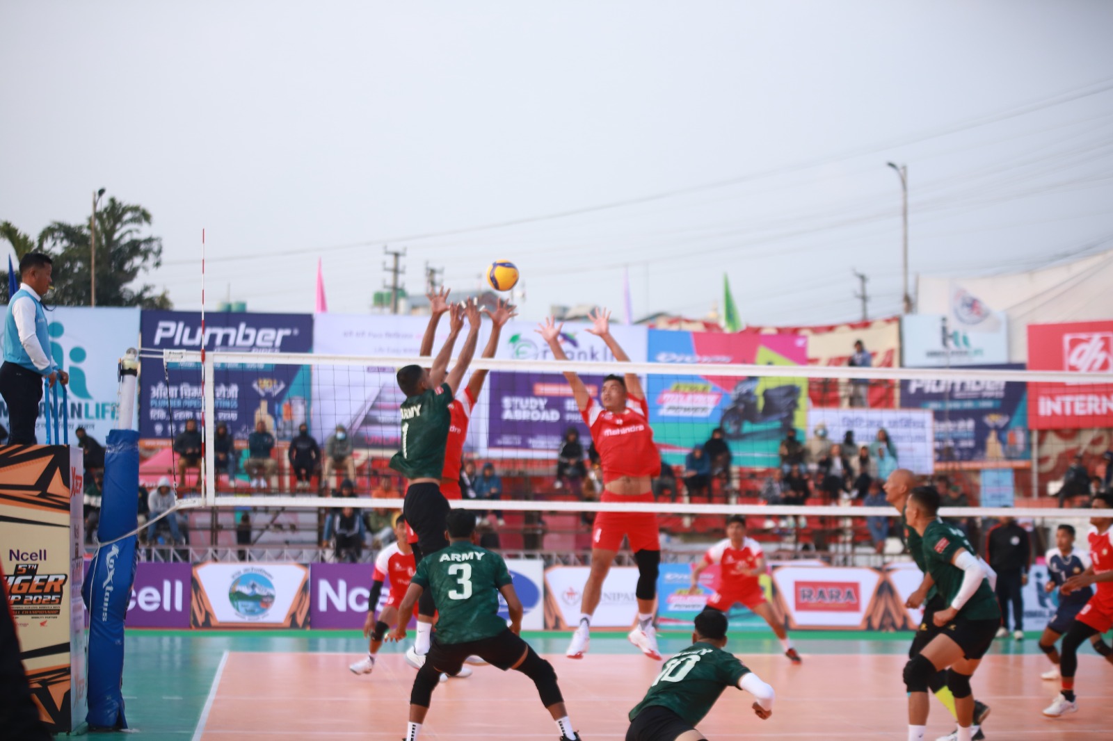 पोखरा रंगशालास्थित भलिबल कोर्टमा भर्खरै सकिएको खेलमा एपिएफमाथि आर्मीले ३–० को सहज जित निकालेको हो । आर्मीले पहिलो सेट २५–१८, दोस्रो सेट २५–२३ र तेस्रो सेट २५–१५ ले आफ्नो पक्षमा पा¥यो ।