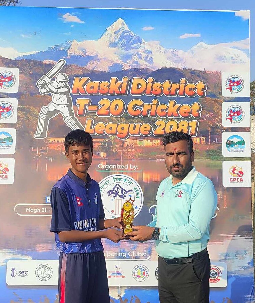 यसैगरी अर्को खेलमा राईजिङ क्रिकेट क्लबले माछापुच्छ«े क्रिकेट क्लबलाई ११ रनले पराजित गरेको छ । पोखरा रंगशाला क्रिकेट मैदानमा भएको प्रतिस्पर्धामा टस जित्दै राईजिङले अनिष राउतको ३८ रनको योगदानमा १२६ रनको योगफल तयार पार्यो । ओपनर अनिल गुरुङले १६ रन बनाए । निर्मल शाहीले २३ रन बनाउँदा राउतले ३८ रनको योगदान गरे । उनले ३८ बल खेल्दै ५ चौका प्रहार गरेका थिए । नविन पोखरेल भने २२ रनमा अविजित रहे । रत्नचन्द्र तिवारी, कविन सापकोटा र रितेश बरालले समान एक एक विकेट लिए ।