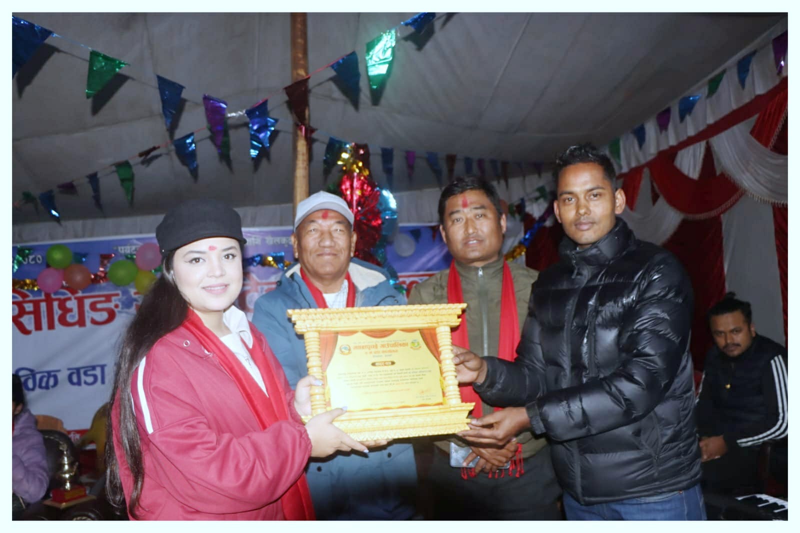 पाेखरा, हेमजा । सिधिङ युनाईटेड यूथ क्लबको आयोजनामा माघ ३० गते देखि सिधिङ खेलमैदानमा जारी साबिक वडा स्तरीय पुरुष भलिबल प्रतियोगिताको अवसरमा गायिका समीक्षा अधिकारीलाई शनिवार कार्यक्रमका बिच सम्मान गरिएको छ ।