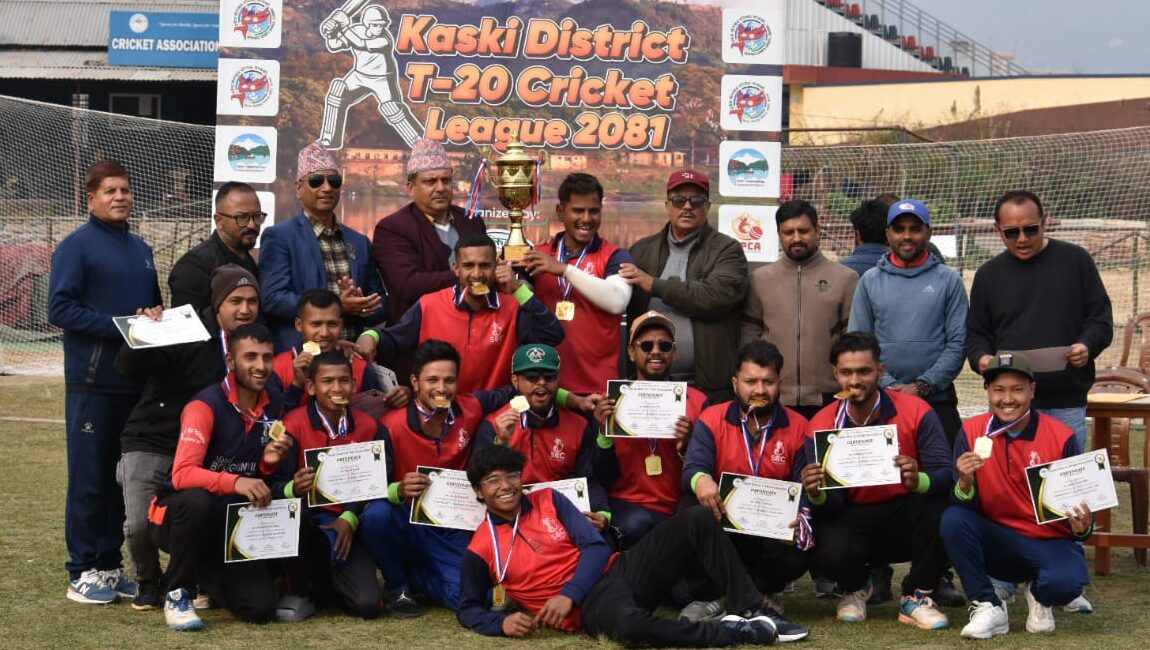 कास्की जिल्ला क्रिकेट संघको आयोजनामा सञ्चालित प्रतियोगितामा टस हारेर व्याटिङ गरेको कास्कीले शून्य रनमै पहिलो विकेट गुमायो । ओपनर सोहेल कुँवर विपिन खत्रीको बलमा दुई बलमै आउट भएपछि कास्कीको विकेट पतन शुरु भएको थियो । तेस्रो नम्बरमा आएका रोहित चन्द पनि विपिन खत्रीकै बलमा शून्यमै पभेलियन फर्किए । भरपर्दा व्याटर अर्जुन कुमालले भने ३३ रन बनाए । उनले २८ बल खेल्ने क्रममा तीन चौका र १ छक्का प्रहार गरेका थिए । कुमाल राज परियारको बलमा अर्जुन अधिकारीबाट क्याच भए ।