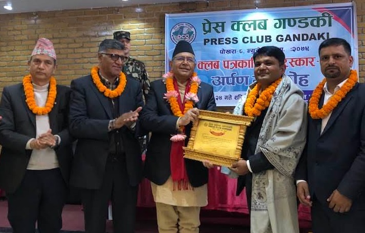 सामाजिक सञ्जलमा देखिएको विकृति, विसङ्गतिलाई नियन्त्रण र नियमन गर्न आवश्यक देखिएको छ,” उहाँले भन्नुभयो, “त्यसमा देखिएको विकृतिलाई नियन्त्रण गर्न कानुन बनाउँदा व्यक्तिको अभिव्यक्ति स्वतन्त्रताको हनन हुँदैन ।” अहिलेको संसद पारदर्शी भएकाले सम्बन्धित सरोकार राख्नेहरूसँग पनि व्यापक रूपमा छलफल गरेर मात्र कानुन निर्माण गर्ने संसद कटिबद्ध रहेको उहाँको भनाइ छ । उहाँले पत्रकारिता क्षेत्रको काम समाचार लेख्ने र सम्प्रेण गर्ने मात्र नभएर हामीले प्राप्त गरेको उपलब्धीको रक्षा गर्ने जिम्मेवारी पनि भएको उहाँले औँल्याउनुभयो । उहाँले लोकतान्त्रिक प्रणालीमा प्रेस स्वतन्त्रतालाई अंकुश लगाउने गरी कानुन नबन्ने ठोकुवा गर्नुभयो । पुरस्ककृत पत्रकार कृष्णमणि बरालले पुरस्कारका लागि योग्य ठानेकोमा खुशी ब्यक्त गर्दै प्रेस क्लब गण्डकीले व्यवसायिक पत्रकारिताको पक्षमा काम गर्न सुझाव दिनुभयो । प्रेस क्लब गण्डकीका अध्यक्ष एकराज गिरीको अध्यक्षतामा भएको कार्यक्रममा सचिव गौरब त्रिपाठी र कोषााध्यष राजु गिरीले बोल्नुभएको थियो ।