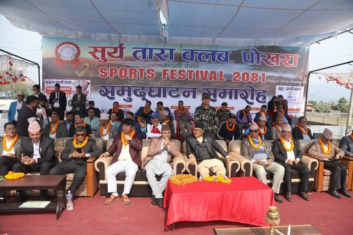 पोखरा, २४ फागुन ।सुर्य तारा क्लब र नेपाल खेलकुद महासंघ गण्डकीको संयुक्त आयोजनामा शनिवार देखि कास्कीकोे पोखरा–२९ स्थित प्रस्तावित् लेखनाथ रंगशालामा दोस्रो सुर्य तारा खेल महोत्सव शुरु भएको छ ।