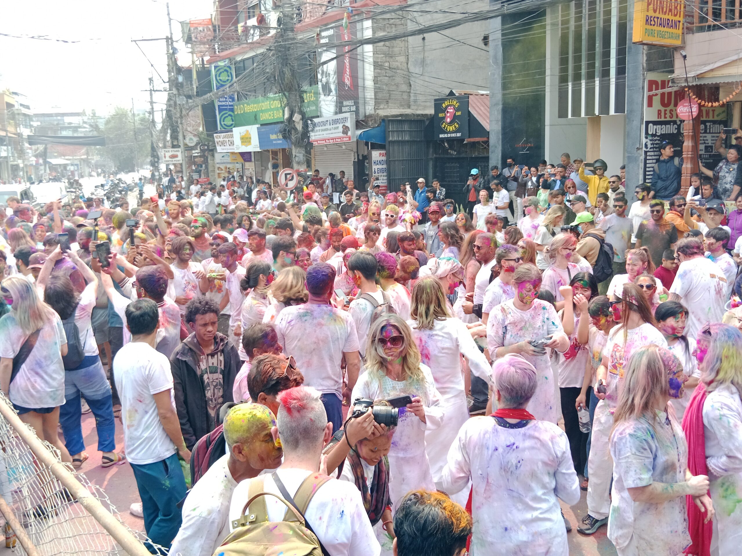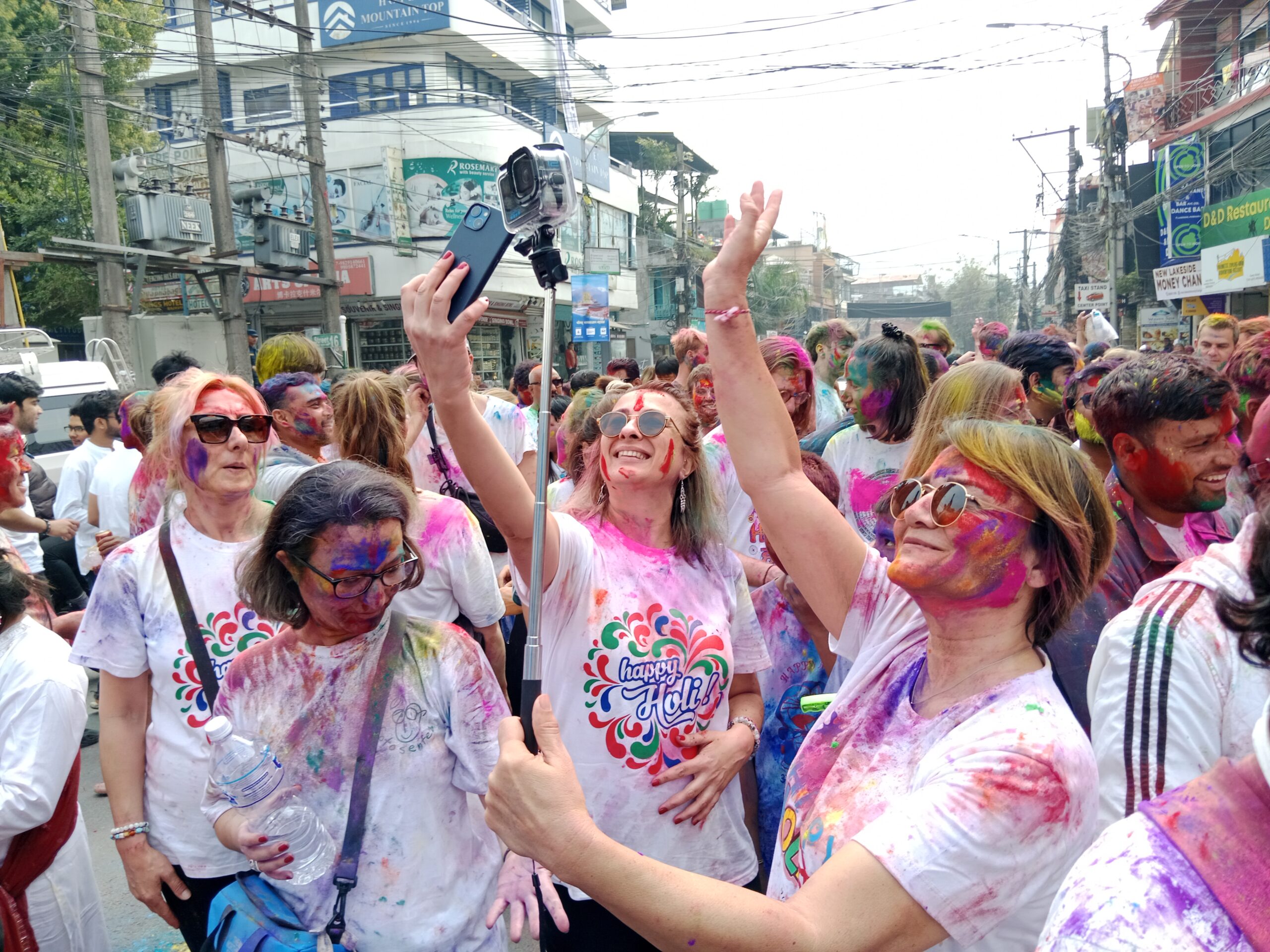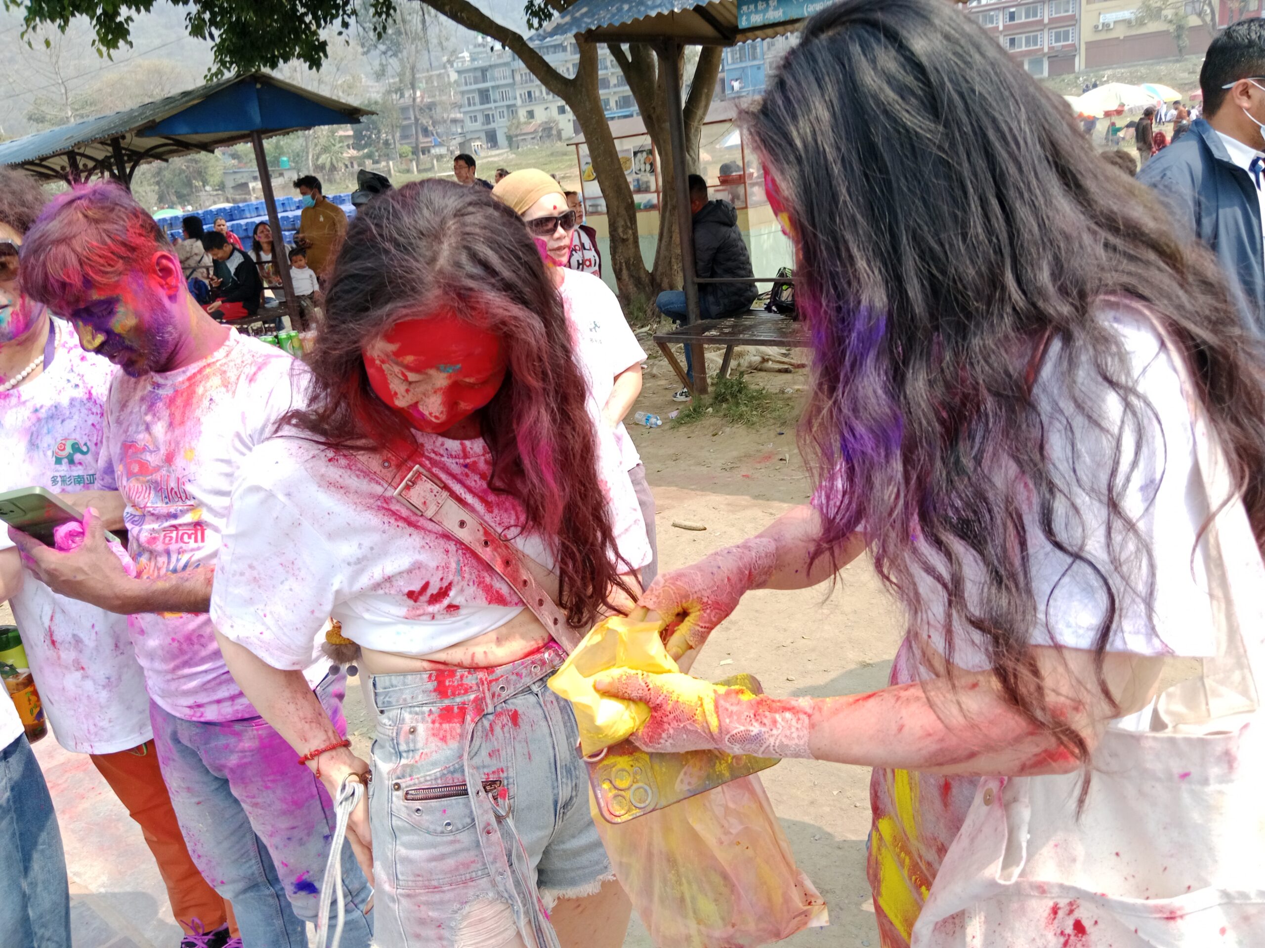 एकआपसमा रंग लगाएर याे पर्व मनाइयो ।पाेखरामा स्वदेशी र विदेशी सबैले हाेलीमा रंग लगाएर मनाएका छन । पाेखराकाे फेवाताल किनार लेकसाइडमा हाेलीकाे राैनक तस्बिरमा ।