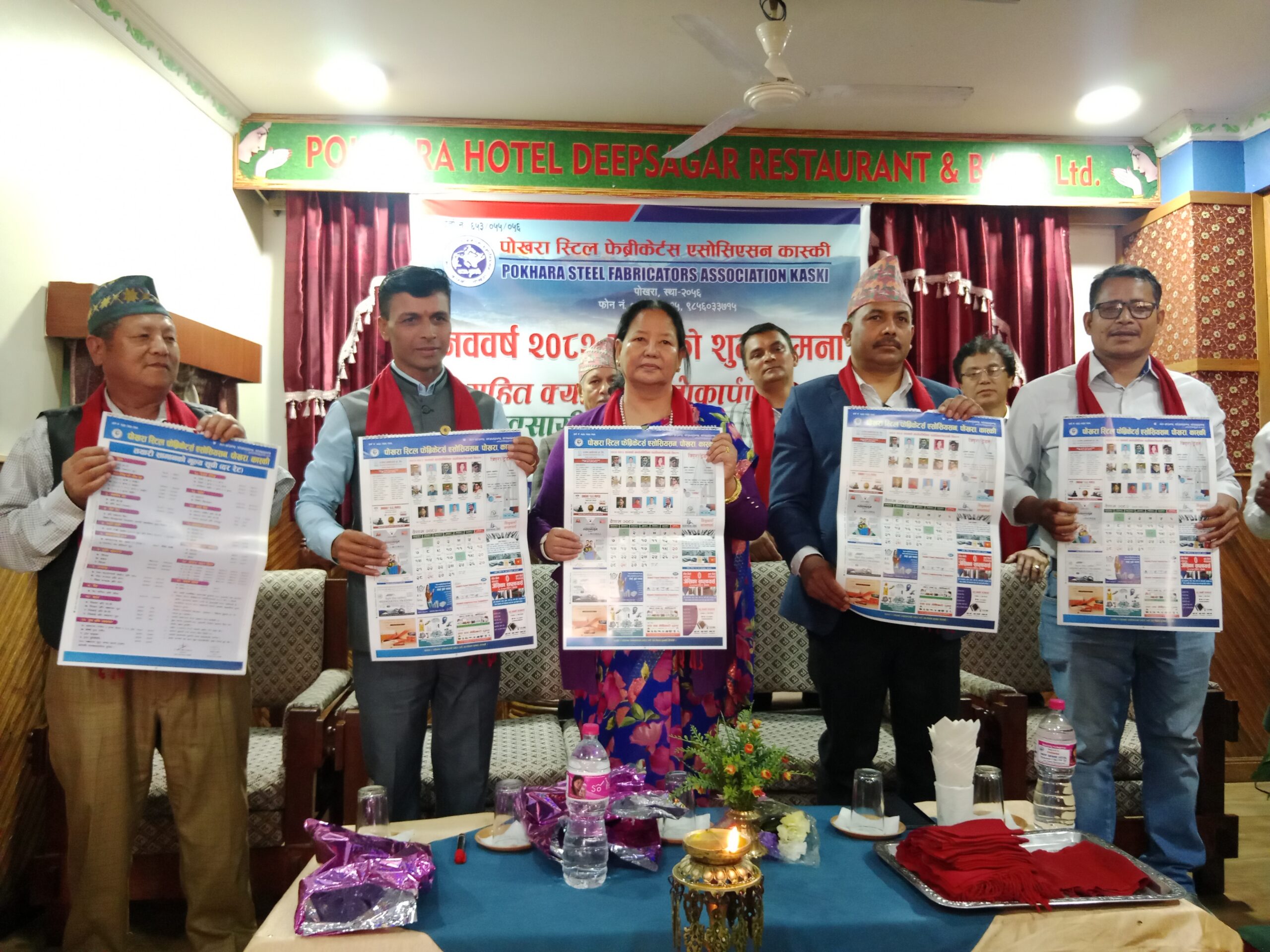 क्यालेन्डरको पोखरा महानगरपालिकाका उपप्रमुख मञ्जुदेवी गुरुङले शनिबार आयोजित कार्यक्रममा लोकार्पण गर्नुभयो । कार्यक्रममा बोल्दै उपप्रमुख गुरुङले स्टिल र फलामको प्रयोग पछिल्लो समय बढेको बताउदै यस व्यवसायको भविष्य राम्रो रहेको बताउनुभयो ।उहाँले व्यवसायीहरुका समस्याहरु रहेको बताउदैँ त्यसलाई समाधानका लागि महानगर व्यवसायीहरुको साथ रहेको बताउनुभयो ।