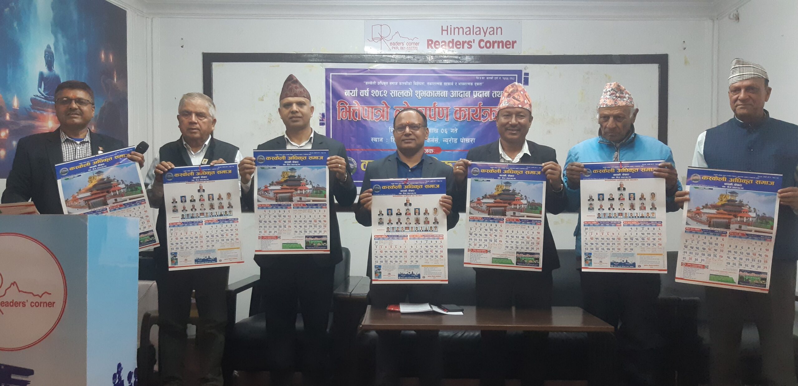 कर्मचारी मिलन केन्द्र कास्कीका अध्यक्ष एवम् समाजका आजीवन सदस्य लोकनाथ आचार्य, समाजका अध्यक्ष चन्द्रबहादुर सुवेदी, सल्लाहकारहरू लगायतले भित्तेपात्रोको संयुक्त रुपमा लोकार्पण गर्नुभयो ।