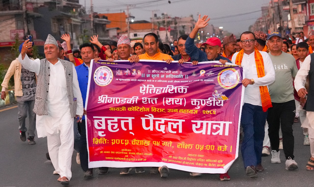 पाेखरा, बैशाख १५ गते ।मानवसेवा फाउण्डेशनको आयोजनामा पोखराको बिरौटास्थित कोटिहोम महायज्ञ परिसरबाट रात्रीकालीन बृहत् पैदल यात्रा भव्य रूपमा सम्पन्न भएको छ। साँझ ६:०० बजे शुभारम्भ भएको यो यात्रा श्री गण्डकी शतकुण्डीय गायत्री कोटीहोम विराट ज्ञान महायज्ञ (बैशाख १७ देखि जेठ २६, २०८२ सम्म) को प्रचार–प्रसार, धार्मिक जागरण र सामाजिक सद्भाव प्रवाह गर्ने उद्देश्यले आयोजित थियो।