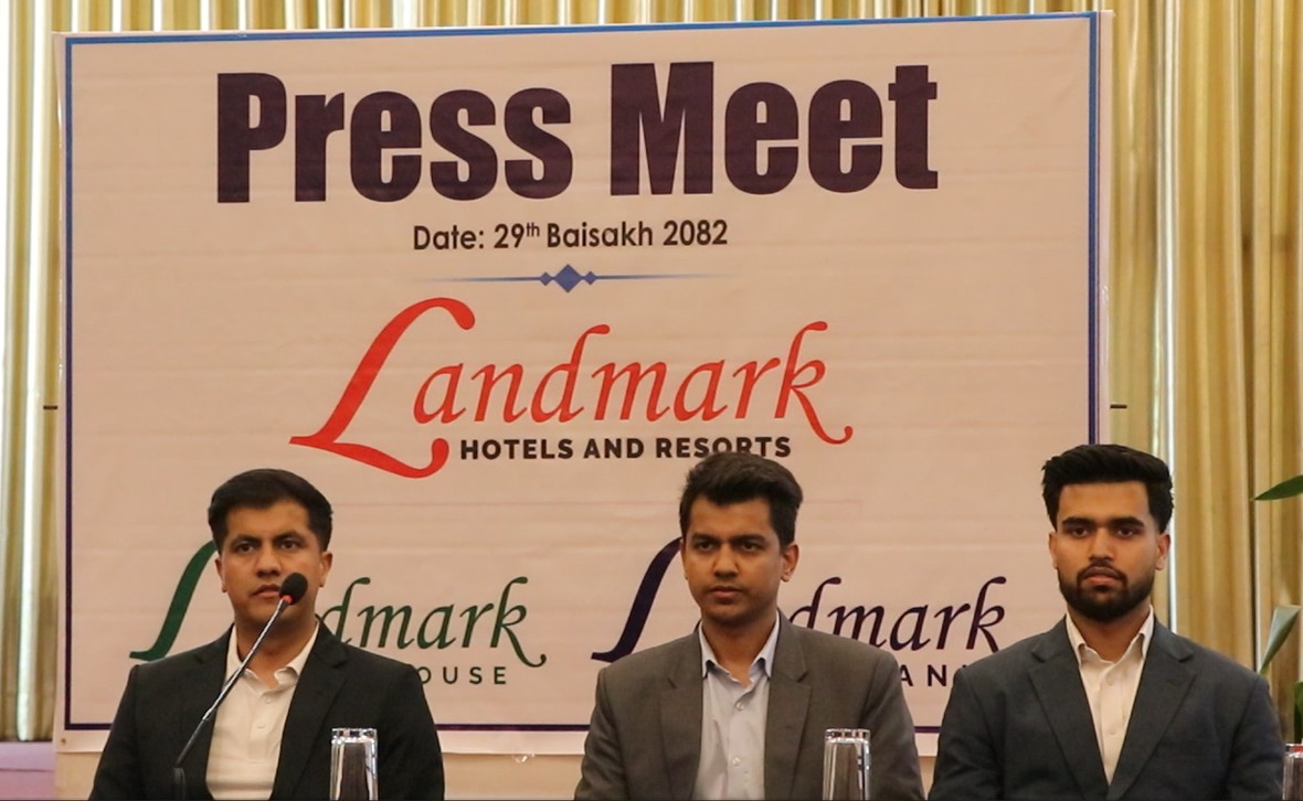 आइतबार भरतपुरको ल्याण्डमार्क नारायणीमा पत्रकार सम्मेलन गर्दै ल्यान्डमार्क होटल्स एन्ड रिसोर्टका कर्पोरेट अपरेशन निर्देशक सम्राट पाण्डेले लिजिङ गरेर रोयल सेन्चुरी होटललाई ल्यान्डमार्क नारायणी र देवघाटको फार्म हाउसलाई ल्यान्डमार्क फार्म हाउस बनाएर नयाँ व्यवस्थापनसहित सञ्चालनमा ल्याइएको जानकारी दिनुभयो ।