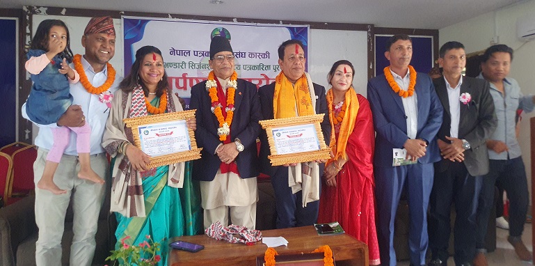 कार्यक्रममा प्रतिभा छनोट समितिका संयोजक दीपेन्द्र श्रेष्ठले सम्मानित व्यक्तित्वको परिचय सहित शुभकामना दिए । सम्मानित केशव पाठक र दुर्गा अधिकारीले सम्मानले पत्रकारिता क्षेत्रमा थप क्रियाशिल हुने उर्जा मिलेको बताउदै आभार प्रकट गरे । महासंघ कास्की अध्यक्ष माधव बरालको अध्यक्षतामा सम्पन्न उक्र कार्यक्रममा स्वागत उपाध्यक्ष माधव रेग्मी र संचालन सचिव भूपाल गुरूङले गरेका थिए ।