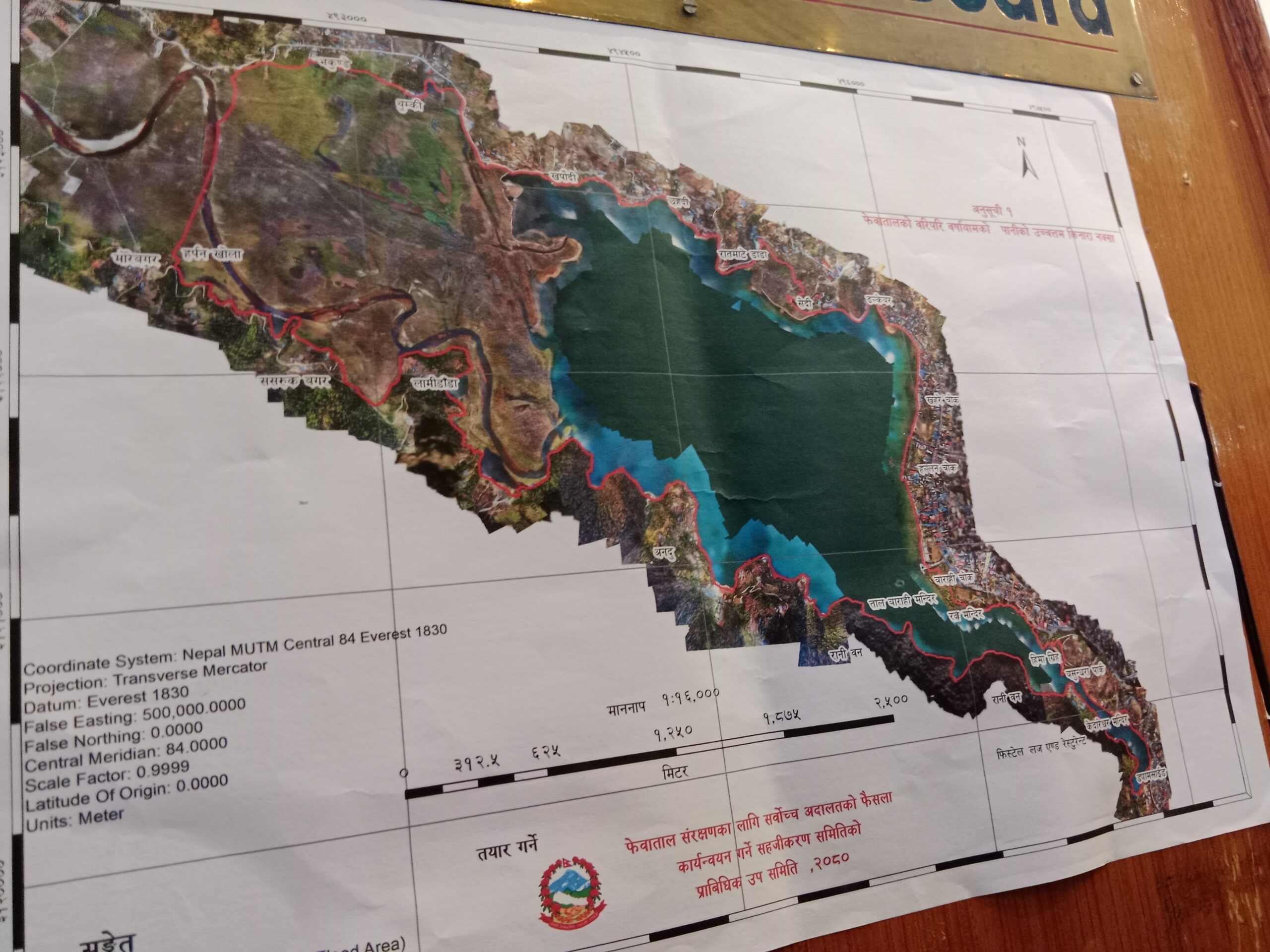 सिँचाइ डिभिजन कार्यालय कास्कीको विगत १० वर्षको रेकर्ड तथा विभिन्न समयमा बनेका फेवातालका नक्साहरूको अध्ययन पश्चात् फेवातालको हाई फ्लोड लेबल ७९४.९५ मिटर कायम गरिएको आचार्यले बताउनुभयो । उक्त विन्दुलाई हाई फ्लोड लेभल आधार मान्दा तालको ताल घर ६.३४३ वर्ग कि.मी अर्थात् १२ हजार ४६८ रोपनी ३ पैसा ३ दाम कायम हुन आउने उहाँले बताउनुभयो । सम्मानित सर्वोच्च अदालतले तोकेको ६५ मिटर समेतको कुल क्षेत्रफल ७.६१६ वर्ग कि.मी (१४ हजार ९७० रोपनी ५ आना २ दाम) कायम हुने आचार्यको भनाई छ ।