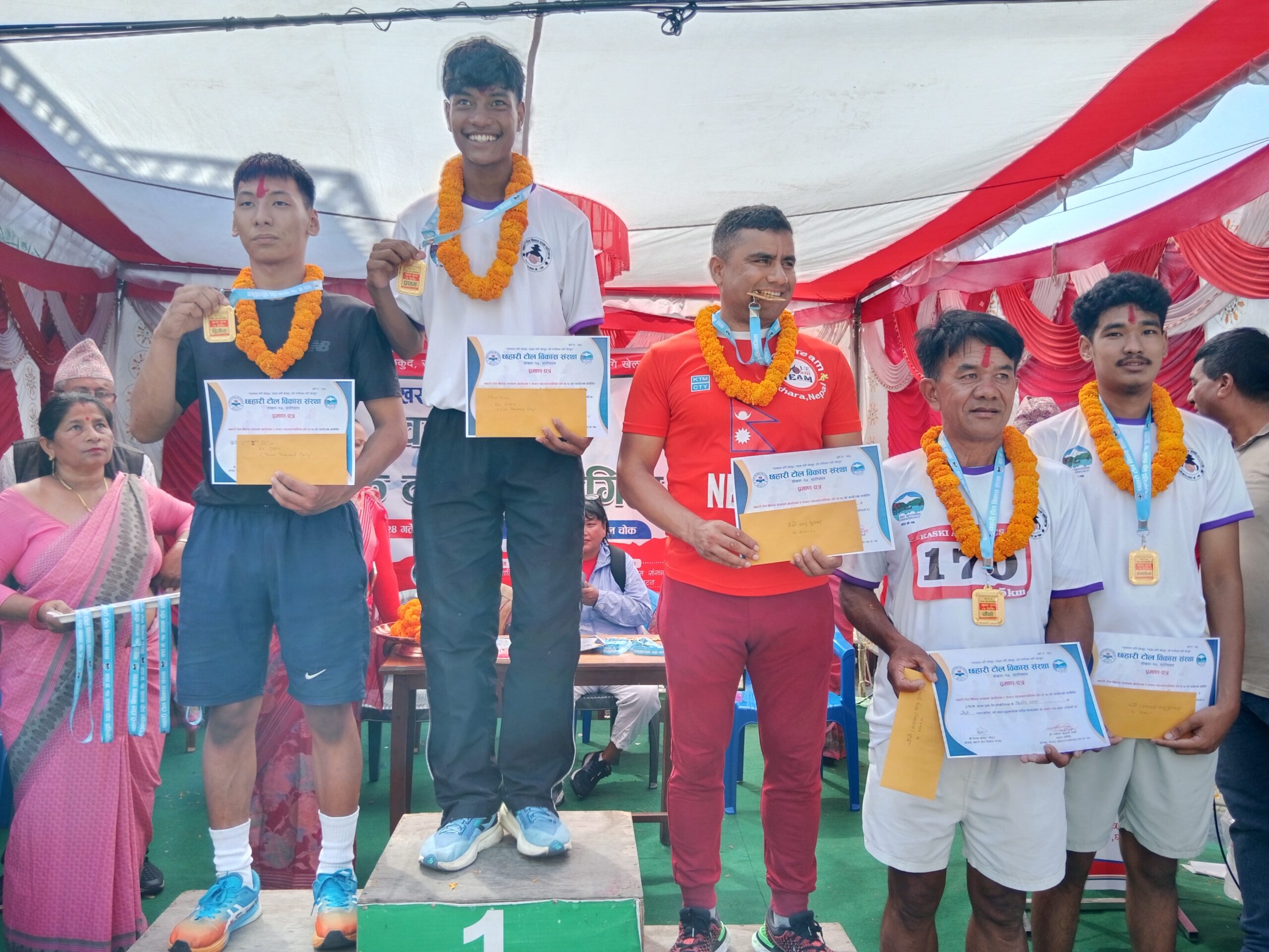 खुल्ला ५ किलोमिटर पुरुष दाैडमा प्रथम तेनजाेन राेक्का मगर छाेरेपाटन मावि, द्वितीय युवराज मल्ल घारिपाटन टाेल विकास संस्था, तृतीय चेतना चालिसे, चाैथाे किशाेर थापा हिमालयन म्युजियम टाेल विकास संस्था र पाँचौ कृतन श्रेष्ठ हुनुभएकाे छ ।