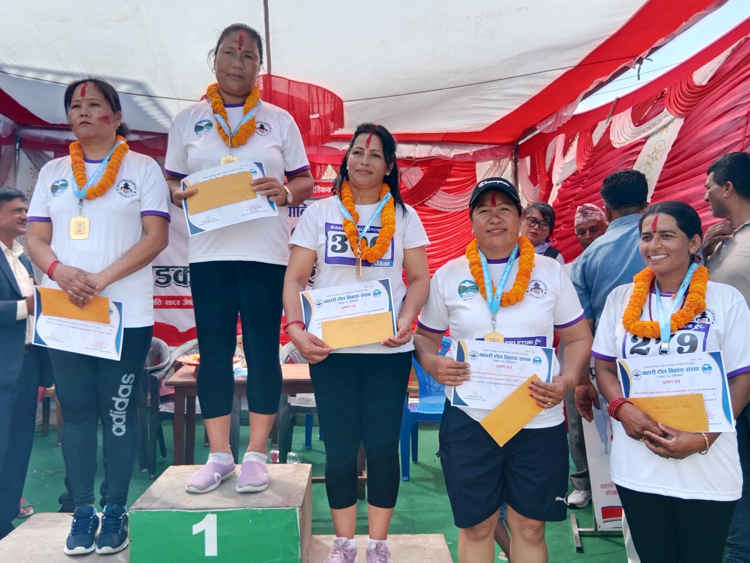 आमा समूह तर्फ तीन किलोमिटर दाैडमा प्रथम विष्णु ठकुरी जुनतारा आमा समूह, द्वितीय अञ्जु कुमारी गुरुङ शुभकामना आमा समुह, तृतीय कमला सापकोटा सुसान्त आमा समुह,चाैथाे