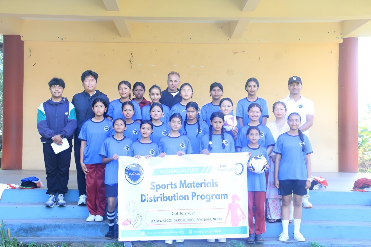 पोखरा । युनाइटेड कम्युनिटी नेपाल (युनिकन) संस्थाले ‘फुटबल फोर फ्युचर’ कार्यक्रम अन्तर्गत कन्या माध्यमिक विद्यालय, पोखराका छात्राहरूलाई फुटबल खेल सामग्री वितरण गर्नुका साथै निःशुल्क प्रशिक्षण शुरु गरेको छ । संस्थाले प्रशिक्षार्थीहरूलाई जर्सी सेट, फुटबल बुट, मोजा, खुट्टामा लगाउने प्याड वितरण गर्नुका साथै विद्यालयको लागि ३ वटा फुटबल वितरण गरेको थियो ।