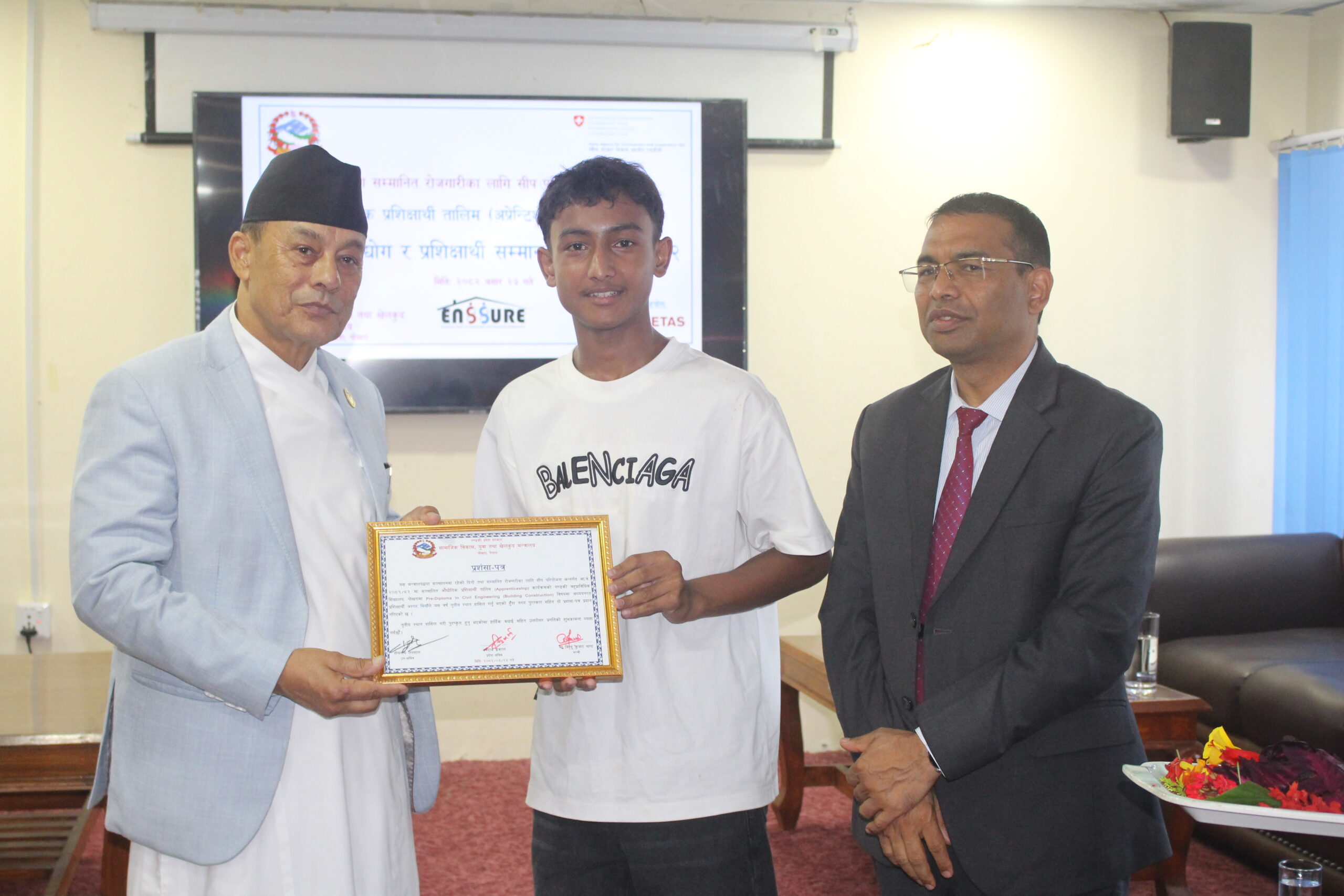 कार्यक्रममा बोल्दै सामाजिक विकास,युवा तथा खेलकुद मन्त्री विन्दुकुमार थापाले स्वदेशी स्रोतमै आधारित यस्ता कार्यक्रमलाई मन्त्रालयले निरन्तरता दिने प्रतिबद्धता जनाए । स्विस सरकार विकास सहयोग परियोजनालाई धन्यवाद दिँदै मन्त्री थापाले परियोजनाको निरन्तर सहयोगको समेत अपेक्षा गरेका छन् । युवालाई उद्योगी बन्न प्रेरित गर्ने र त्यसै अनुरुप बजेटको समेत व्यवस्थापन गरिएको भनाई उनको छ ।