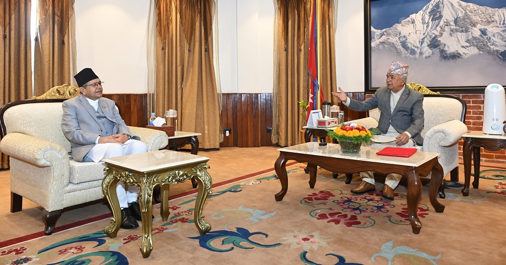 काठमाडौँ, साउन ९ गते । राष्ट्रपति रामचन्द्र पौडेलसँग सभामुख देवराज घिमिरेले भेट गर्नुभएको छ । भेट राष्ट्रपति निवास शीतल निवासमा भएको हो ।