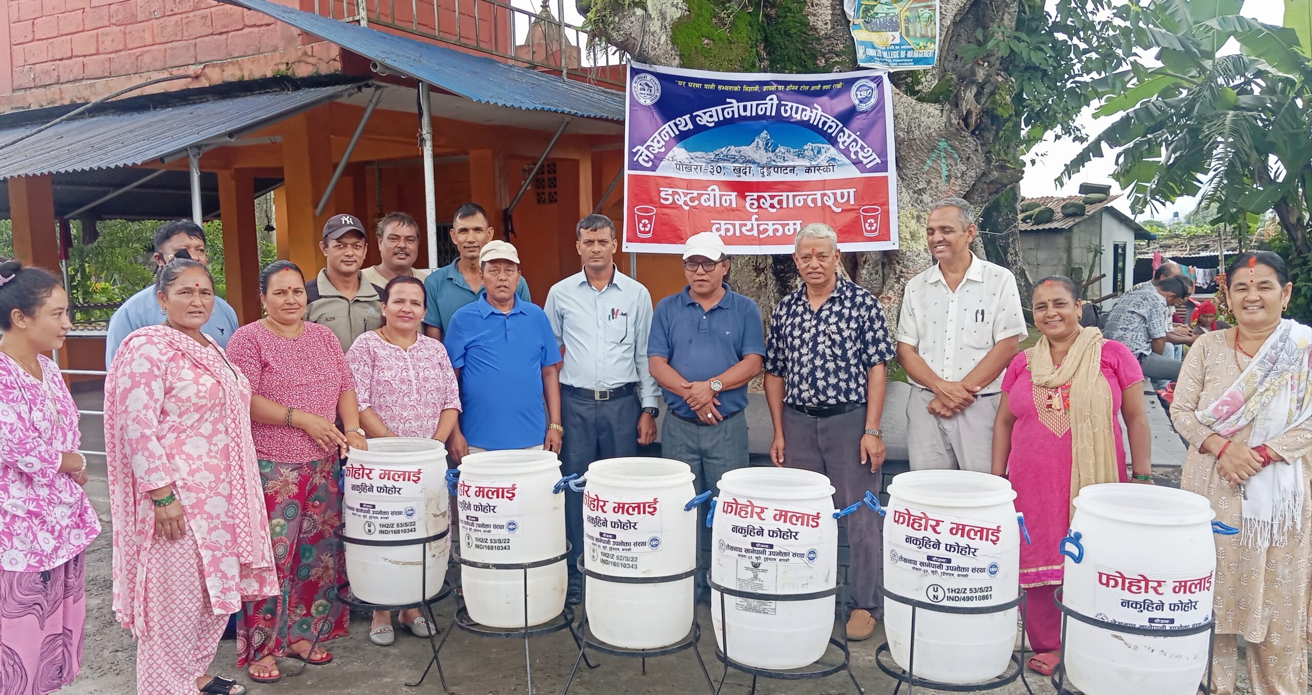 आइतवार लेखनाथ खानेपानी उपभोक्ता संस्थाका अध्यक्ष मुरारी शर्मा,उपाध्यक्ष पुष्पकमल ढुंगाना, ,सचिव नारायणी भट्राई रक्षा लगायतको टिमले प्रगति टोल विकास संस्थाका अन्तर्गत ओमकारेश्वर मन्दिर प्राङ्गणमा आयोजित एक कार्यक्रममा प्रगति टोल विकास संस्थाका उपाध्यक्ष वीरबहादुर खत्री,सचिव विष्णुहरि पौडेल,कोषाध्यक्ष सूर्यबहादुर वि क,सह सचिव राधिका अधिकारी सदस्यहरु मसिना भण्डारी,सम्झना तामाङ,कमला जिसी, विना सुवेदी लगायत पदाधिकारीहरु तथा पोखरा महानगरपालिका वडा नं २९ का वडाध्यक्ष श्रीप्रसाद गुरुङ्गको उपस्थितिमा डस्टविन सहयोग गरेको हो ।