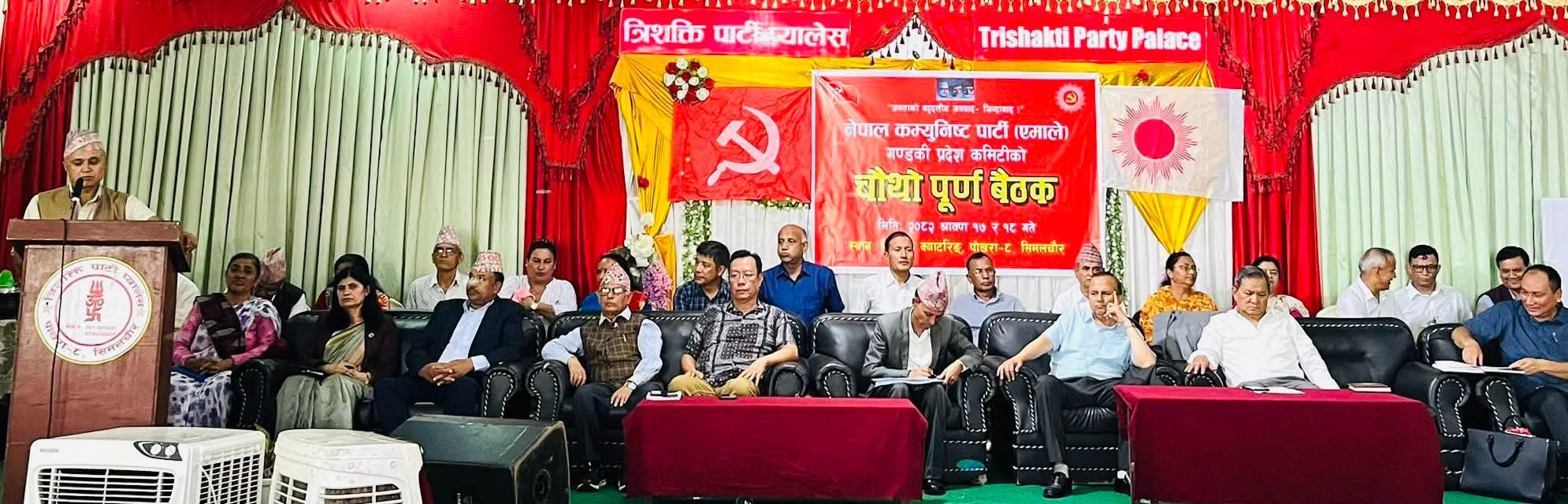 पोखरा।नेकपा (एमाले) गण्डकी प्रदेश कमिटीको चौथो पूर्ण बैठक पोखरामा सुरु भएको छ। बैठकको उद्घाटन सत्रलाई सम्बोधन गर्दै नेकपा (एमाले) का महासचिव शंकर पोखरेलले २०८४ सालमा एकल बहुमतको सरकार बनाउने लक्ष्यसहित विधान संशोधन प्रस्ताव ल्याइएको जानकारी दिनुभयो।