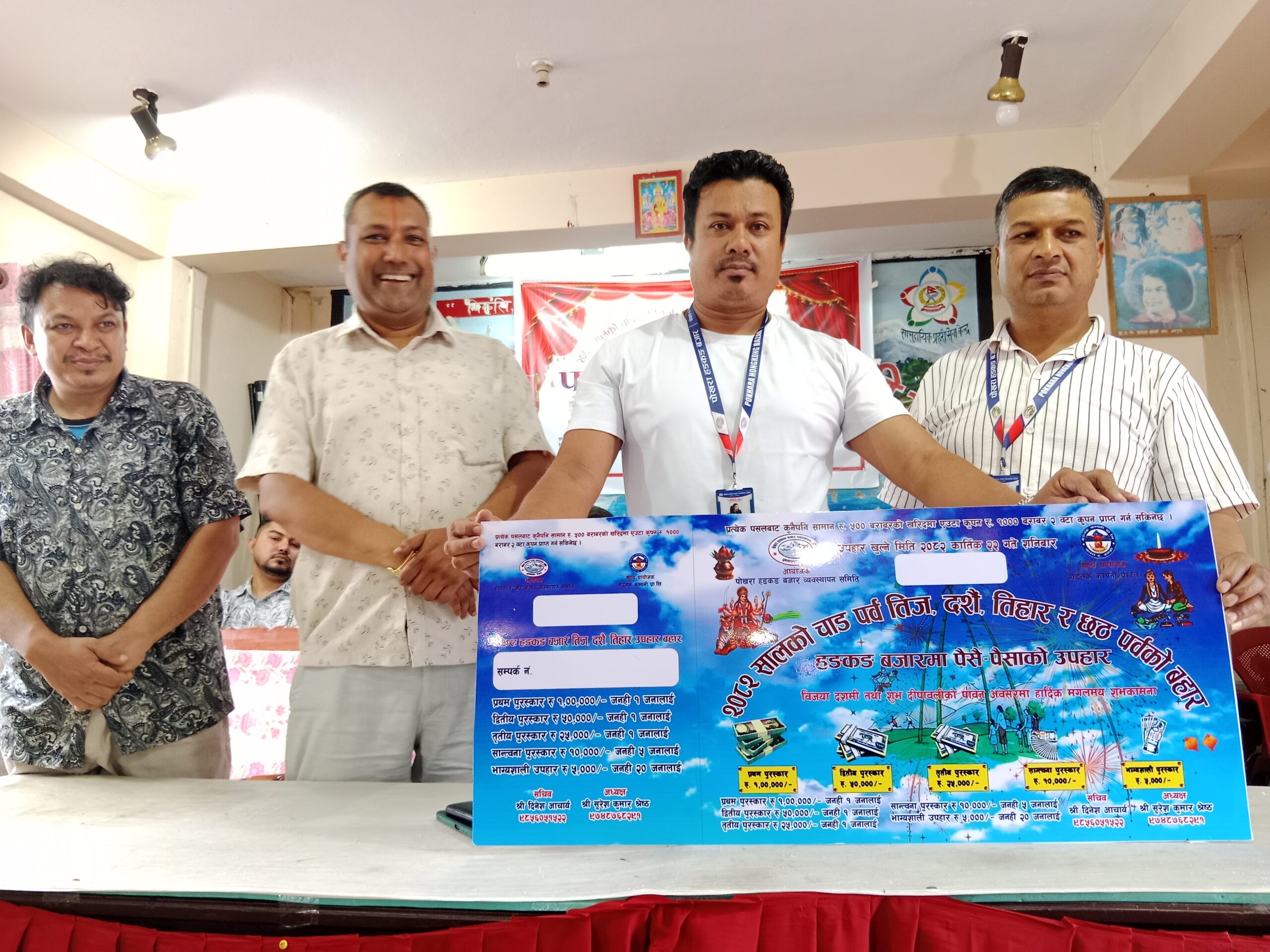 यस योजनाअन्तर्गत प्रथम पुरस्कार रु. १,००,००० (१ जनालाई), द्वितीय पुरस्कार रु. ५०,००० (१ जनालाई), तृतीय पुरस्कार रु. २५,००० (१ जनालाई), सान्त्वना पुरस्कार रु. १०,००० (प्रत्येक ४ जनालाई) र विशेष भाग्यशाली पुरस्कार रु. ५,००० (प्रत्येक २० जनालाई) प्रदान गरिनेछ। पुरस्कारको रकम बजारमा व्यवसाय गर्ने व्यापारीहरूबाट समान तरिकाले संकलन गरिने अध्यक्षले श्रेष्ठले बताए ।