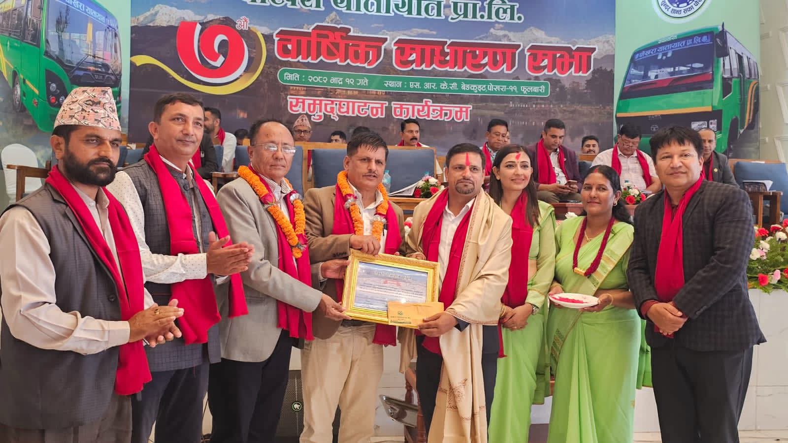 सो अवसरमा चालक जुनबहादुर गुरुङ, सहचालक रोशनकुमार गुरुङ, निरन्तर बस सञ्चालक सूर्यबहादुर गुरुङ, उत्कृष्ट कर्मचारी अर्चना थापा, साथै उत्कृष्ट अंक ल्याउने बस सञ्चालकका छोराछोरीमध्ये सुमना थापा मगर र क्रिसल पौडेललाई सम्मान गरिएको थियो । यस्तै, विभिन्न सहयोगदाताहरूलाई पनि कार्यक्रममा सम्मान गरिएको थियो । पोखरा यातायात प्रालिका अध्यक्ष देउप्रसाद गुरुङको अध्यक्षतामा भएको कार्यक्रममा स्वागत प्रबन्ध निर्देशक देवीप्रसाद कुइकेल र सञ्चालन कम्पनी सचिव जीवन पौडेलले गरेका थिए ।