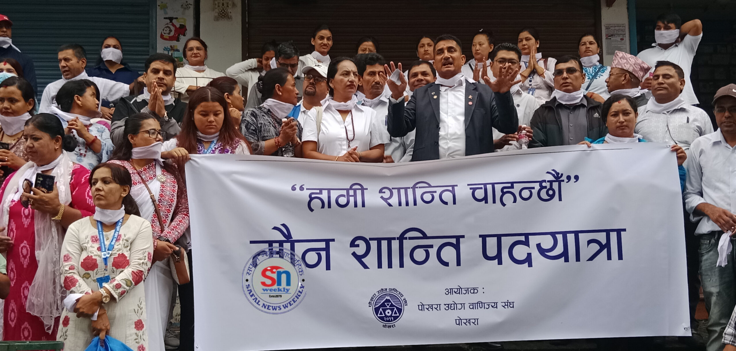पोखरा, भदौ । पोखरा उद्योग वाणिज्य संघले मुलुकको दिगो शान्तिको कामना एवं व्यावसायिक सुरक्षाको प्रत्याभूतिका निम्ति पोखरामा बृहत शान्ति ¥यालीको आयोजना गरेकाे छ ।