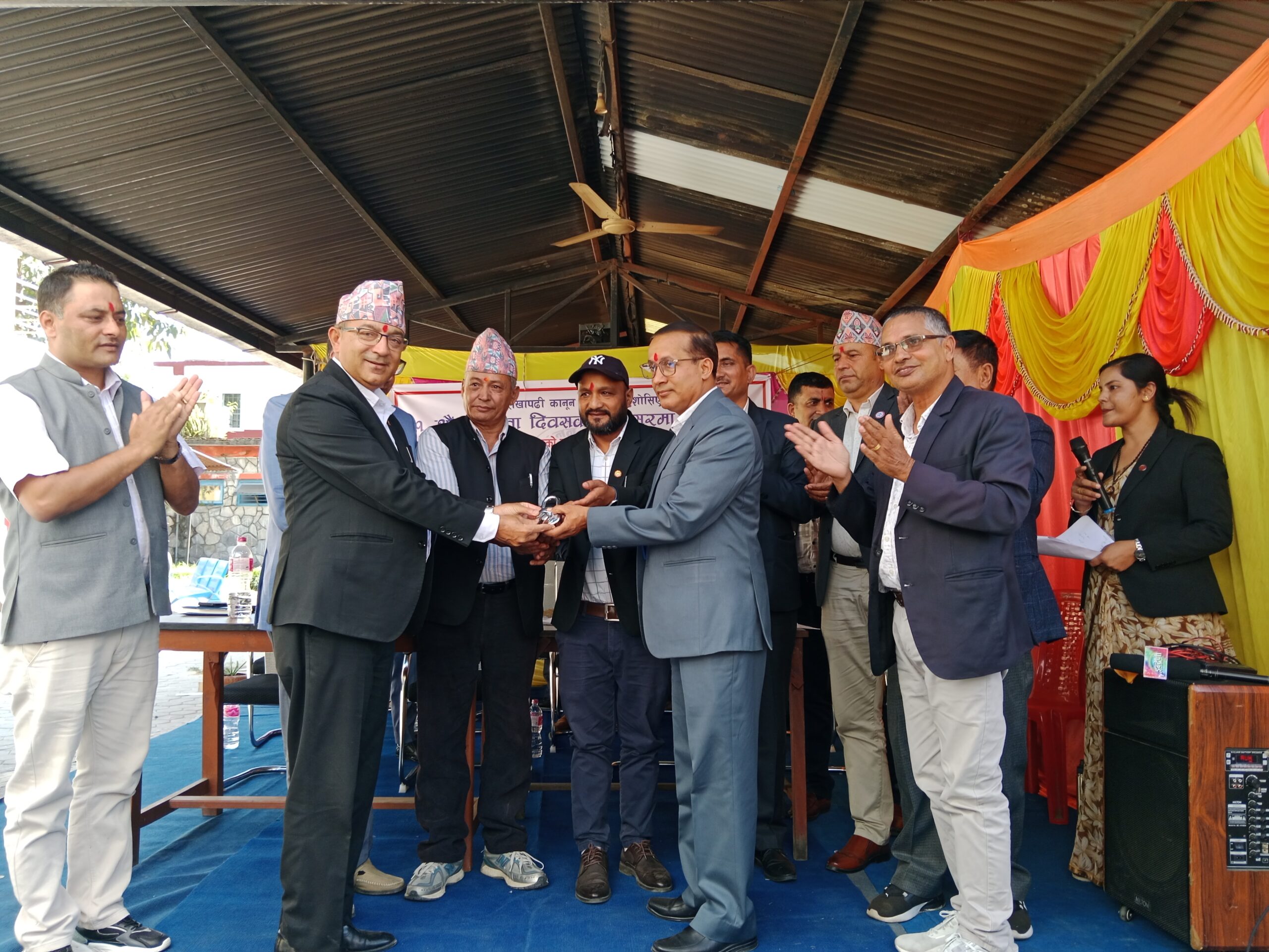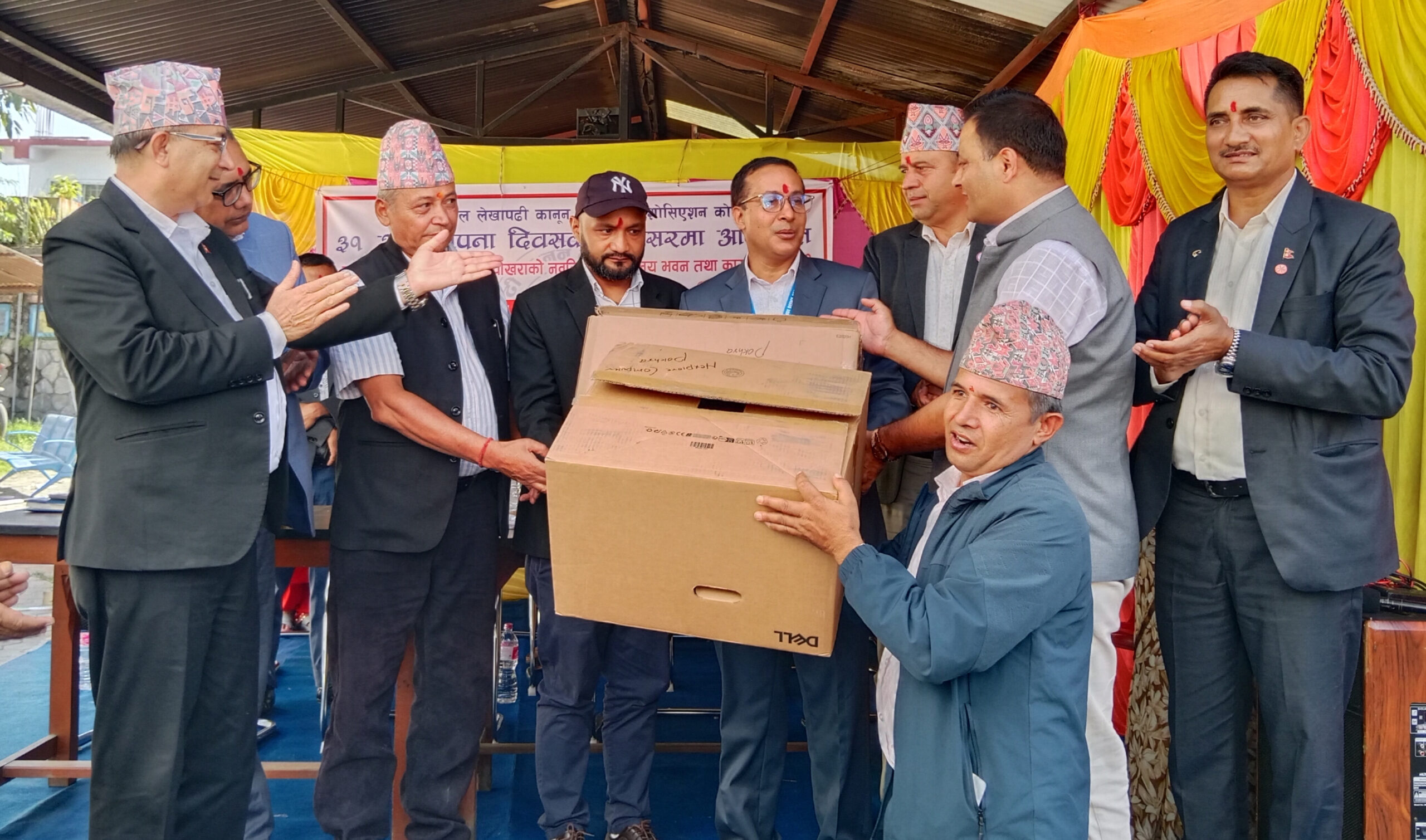 उक्त सामग्री आज पाेखरा महानगरपालिकाका मेयर धनराज आचार्यकाे उपस्थितिमा नेपाल लेखापढी कानुन व्यवसायी एशाेसिएशन गन्डकीका संयोजक खडानन्द लामिछानेले मालपोत कार्यालय पाेखराकाे निमित्त प्रमुख शाेभाखर पाेखरेललाइ हस्तान्तरण गर्नुभयो।