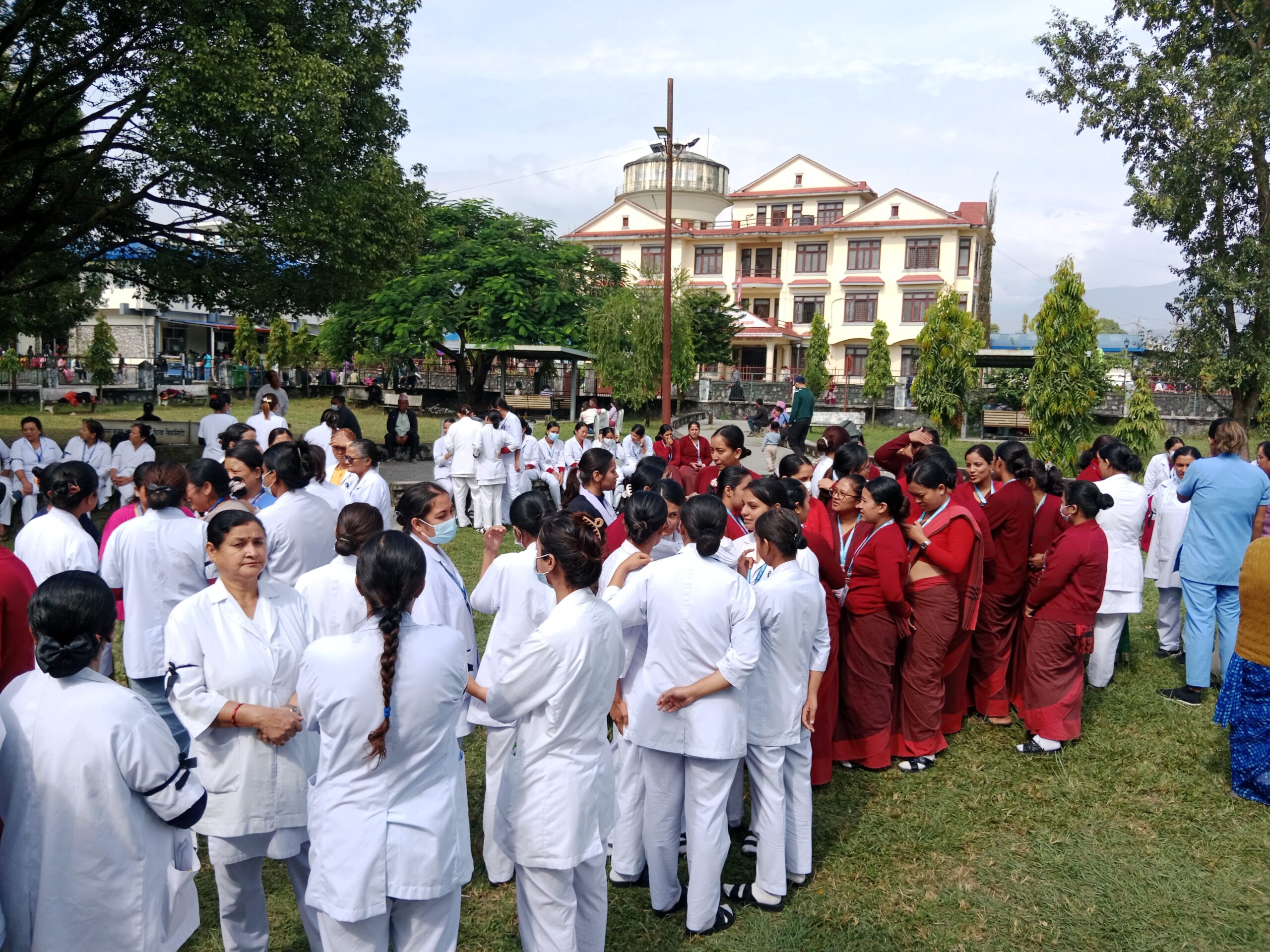 नीजि अस्पतालका नर्सहरुकाे आन्दाेलनलाइ समर्थन गर्दै पाेखरा स्वास्थ्य बिजानका नर्सहरु काम द्दाडेर आन्दाेलनमा सहभागी भएका छन् ।