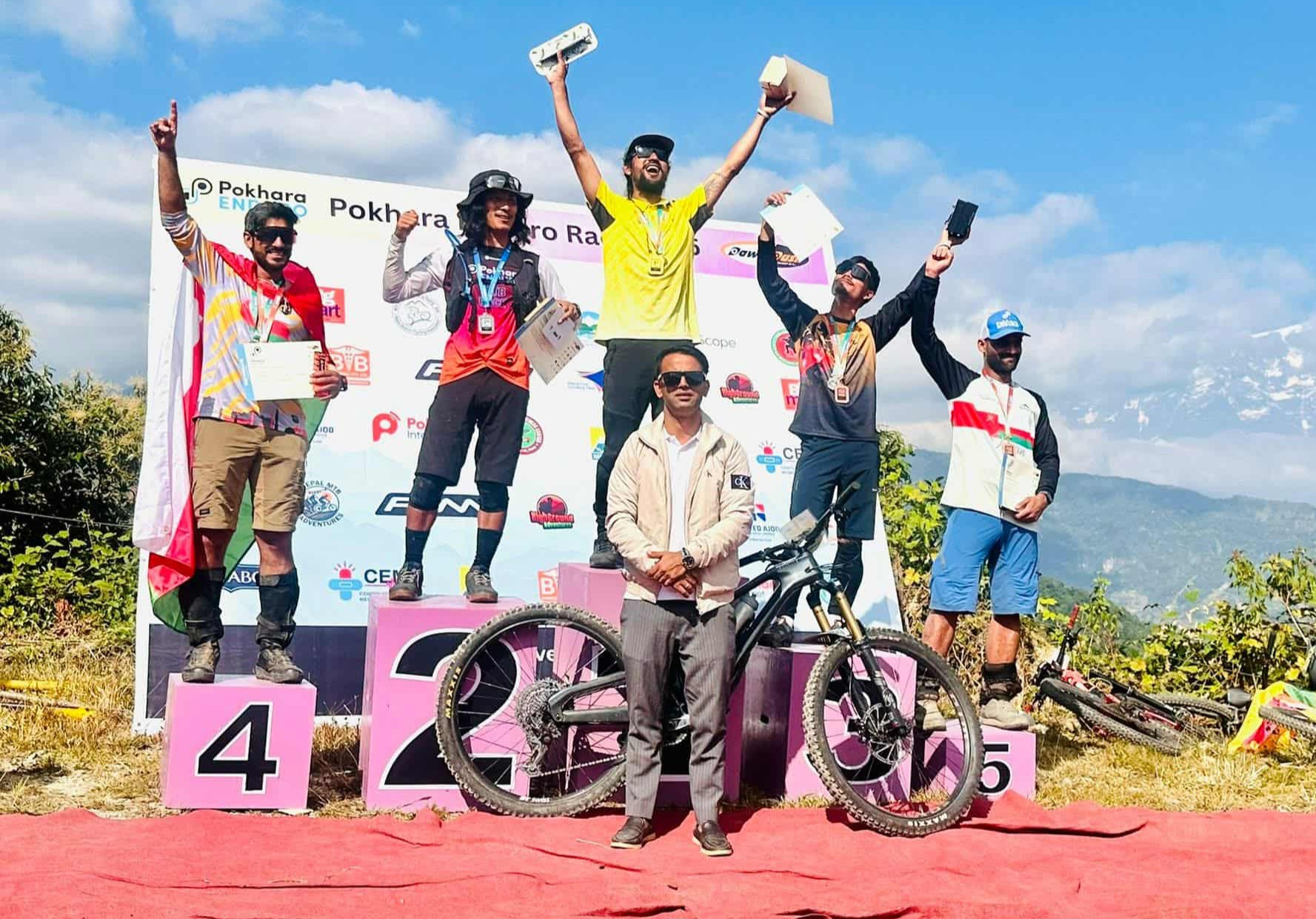 राजु गिरी, पोखरा । तेस्रो संस्करणको अन्तर्राष्ट्रिय माउन्टेन बाइक प्रतियोगिता ‘पोखरा इन्डुरो रेस’ शनिबार सम्पन्न भएको छ । पोखरा महानगरपालिका वडा नम्बर १३ को आर्बा विजय डाँडामा तीन दिनसम्म भएको प्रतियोगितामा आठ देशका ४५ खेलाडी सहभागी थिए । प्रतियोगिता छ वटा ट्रेल कुल ५ किलोमीटर ३६३ मिटर दूरीका साथमा छ वटा विधामा खेलाइएको प्रतियोगिताका रेस डाइरेक्टर सुनिलचन्द्र शर्माले जानकारी दिए ।