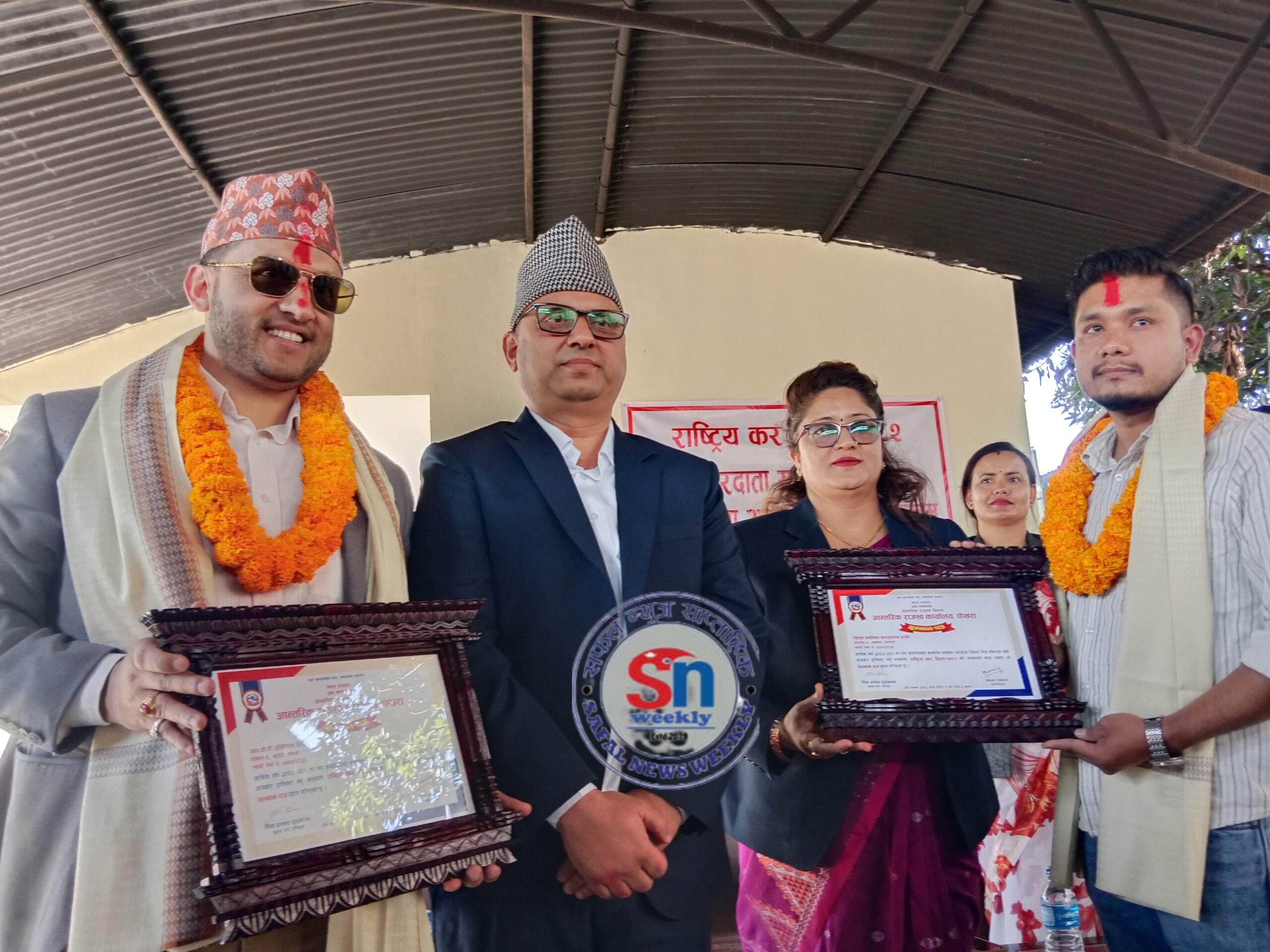 आन्तरिक राजस्व कार्यालय पाेखराले उत्कृष्ट करदातालाइ सम्मान गरेकाे हाे । आन्तरिक राजस्व कार्यालय पोखरामा सबैभन्दा बढी कर दाखिला गर्ने करदाता आर के डी होल्डिङ्स लिमिटेड र करदाता सेवा कार्यालय स्याङ्जा अन्तर्गत सबैभन्दा बढी कर दाखिला गर्ने करदाता खिलुङ कालिका कन्ट्रक्सन प्रा.लि लाई सम्मान गरेकाे हाे ।