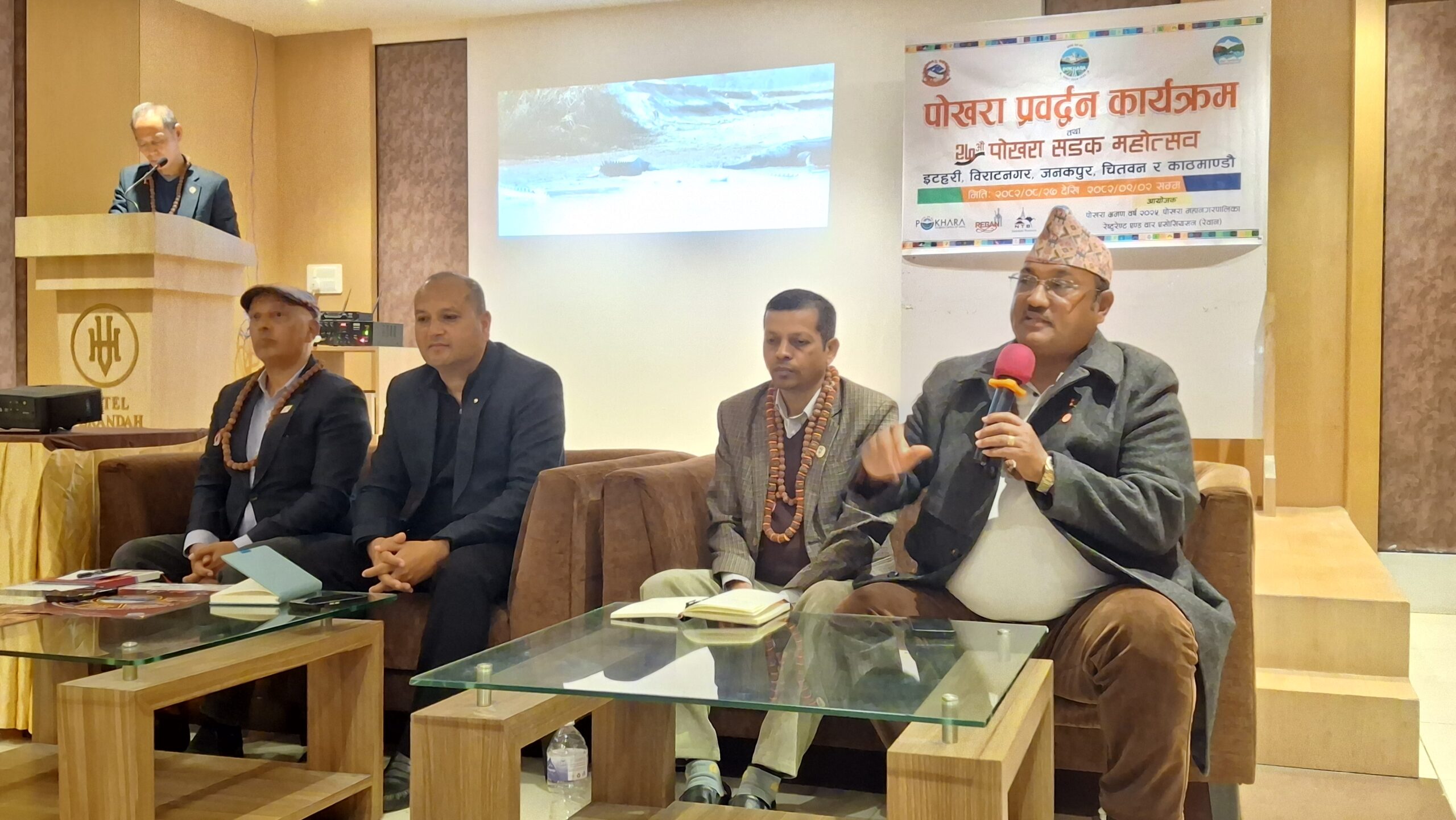 पोखरा । पोखरा भ्रमण वर्ष २०२५ र आउँदै गरेको २७ औं पोखरा सडक महोत्सवको प्रचार प्रसार एवं प्रवद्र्धन गर्ने उद्येश्यका साथ पुर्वी नेपाल आएको पोखरेली पर्यटन व्यवासयीको टोलीले नेपालको पूर्वी शहर बिराटनगर र इटहरीमा पत्रकार सम्मेलन गर्दै पूर्वेलीलाई पोखरा घुम्न निमन्त्रणा गरेको छ । पोखरा भ्रमण वर्ष २०२५ कार्य सम्पादन समिति र रेवान पोखराले संयुक्त रुपमा यि शहरहरुमा पत्रकार सम्मेलनमा गरेको हो । पत्रकार सम्मेलनमा बोल्दै भ्रमण वर्ष कार्यसम्पादन समितिका संयोजक गोपीबहादुर भट्टराईले पोखरा घुम्नका लागि यतिबेला उपयुक्त मौसम भएको बताउँदै सम्पूर्ण पुर्वेलीलाई पोखरा आउन आग्रह गर्नुभयो ।