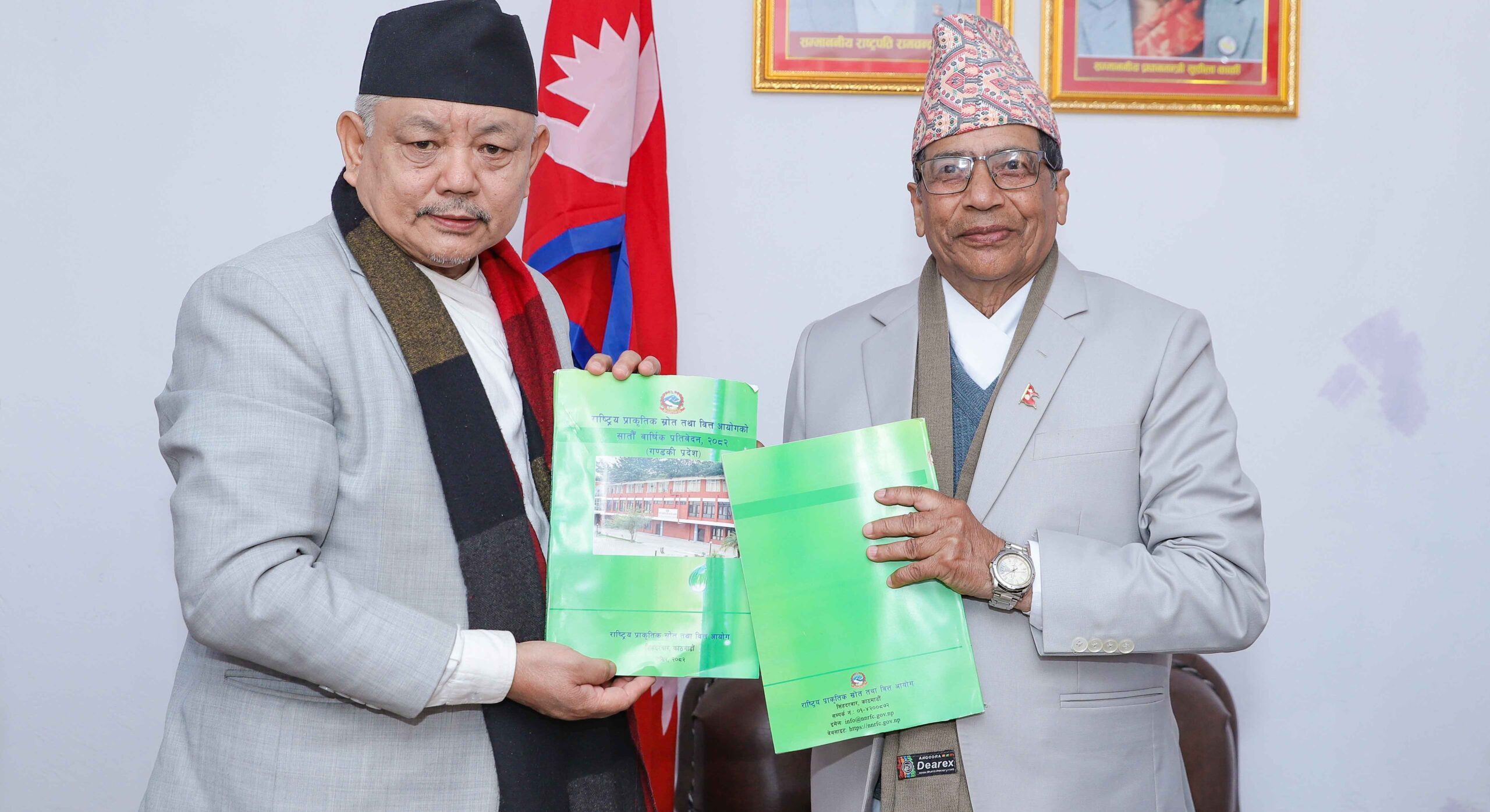नेपालको संविधानको धारा २९४ को उपधारा (३) बमोजिम प्रदेश प्रमुख भट्ट समक्ष गुरूङले प्रतिवेदन हस्तान्तरण गर्नुभएको हो ।प्रदेश प्रमुख भट्टले यस आयोग मुलुकमा वित्तीय संघीयता लागू गर्ने आर्थिक पाटोतर्फको मेरुदण्ड भएको उल्लेख गर्नुृहुँदै पर्याप्त प्राकृतिक श्रोतले पूर्ण भएप्नि देशले पर्याप्त लाभ लिन नसकिएको चिन्ता व्यक्त गर्नुभयो ।