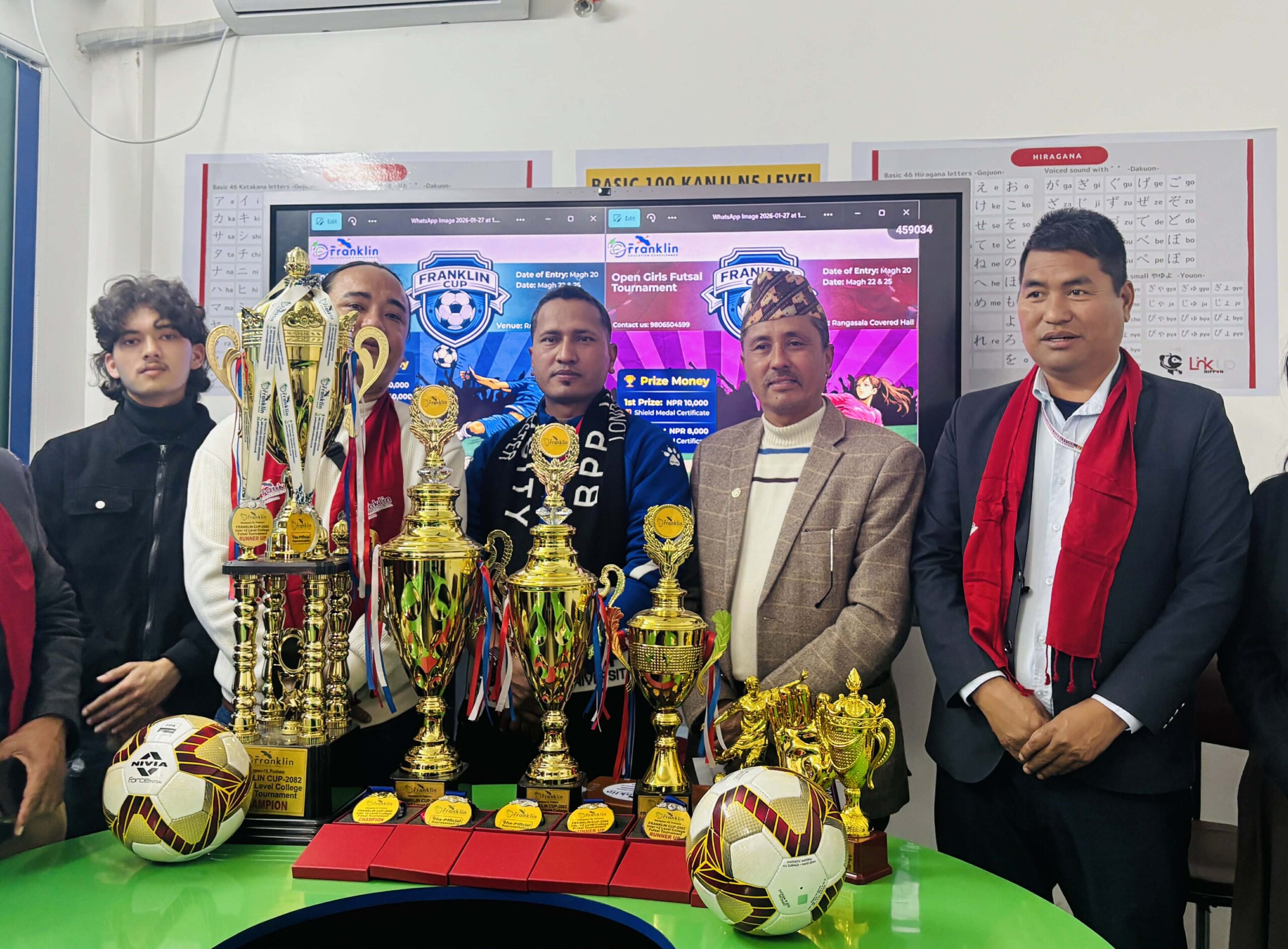 पाेखरा ।फ्रेङ्कलिन एजुकेसन कन्सल्टेन्सीको आयोजनामा फ्र्याङ्कलिन कप फुटसल प्रतियोगिता हुने भएको छ । प्रतियोगिता माघ २२ गतेदेखि २५ गतेसम्म पोखरंगशालाको कभर्ड हलमा सञ्चालन हुनेछ ।