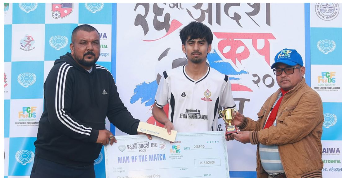 कास्कीको लेखनाथमा माघ ९ देखि सुरु भएको २६ औ संस्करणको आदर्श कप फुटबल प्रतियोगिता अन्तर्गत मंगलवारको सेमीफाइनल खेलमा तनहुँ जिल्ला फुटबल विकास समितिको टिमलाई पराजित गरी फाइनलमा स्थान सुरक्षित गरेको हो । यससँगै प्रहरीको टिमले बुधवारहुने खेलमा होराइजन क्लब स्याङ्गजा र जिल्ला खेलकुद विकास समिति म्याग्दीको टिम मध्येको विजेता टिमसँग १६ गते हुने फाइनलमा भिड्ने छ ।