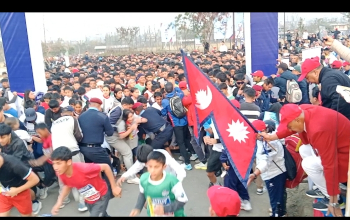 एकराज गिरी /पोखरामा आयोजित पोखरा अन्तर्राष्ट्रिय म्याराथन व्यवस्थापकीय कमजोरीका कारण अव्यवस्थित बनेको छ। दौड सुरु हुने क्रममा भीड नियन्त्रण प्रभावकारी नहुँदा बालबालिका लड्न पुगेका छन्। सहभागीको संख्या अत्यधिक हुँदा सुरुवातमै धकेलाधकेल भएको थियो। पछाडिबाट धकेलिँदा केही विद्यार्थी लडेका थिए भने भीडले कुल्चिँदै अघि बढ्दा थप जोखिम उत्पन्न भएको प्रत्यक्षदर्शीले बताएका छन्।