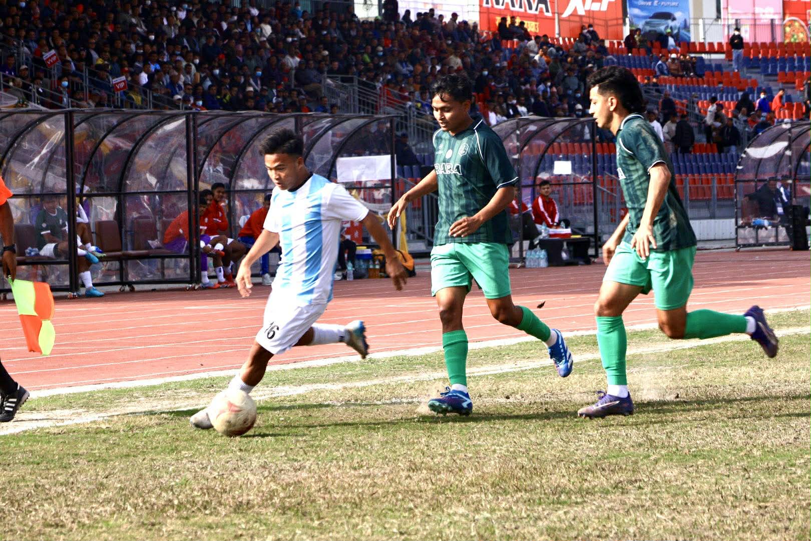 पाेखरा ।मनाङ्ग मस्याङ्गदी क्लब सडन डेथकाे सिकार बन्दा आयाेजक सहारा आहा रारा गाेल्ड कप फुटबलकाे उपाधिका लागि दाबेदारी प्रस्तुत गरेकाे छ । सहाराले मनाङ्गलाइ सडन डेथमा ७—६ ले पाेखरेली मैदानमा स्तब्ध बनाउदै फाइनलकाे यात्रा तय गर्याे । आयाेजक सहाराले उपाधिका लागि जावलाखेल युथ र पाहुनाटोली उज्वेकिस्तानको आभा फुटबल क्लबकाे खेलबाट विजेतासंग शनिबार खेल्ने छ ।पाेखराको मैदानमा भाग्यमानी मानिएकाे मनाङ्ग आजकाल खेलमा भने अभागी सावित भयाे ।