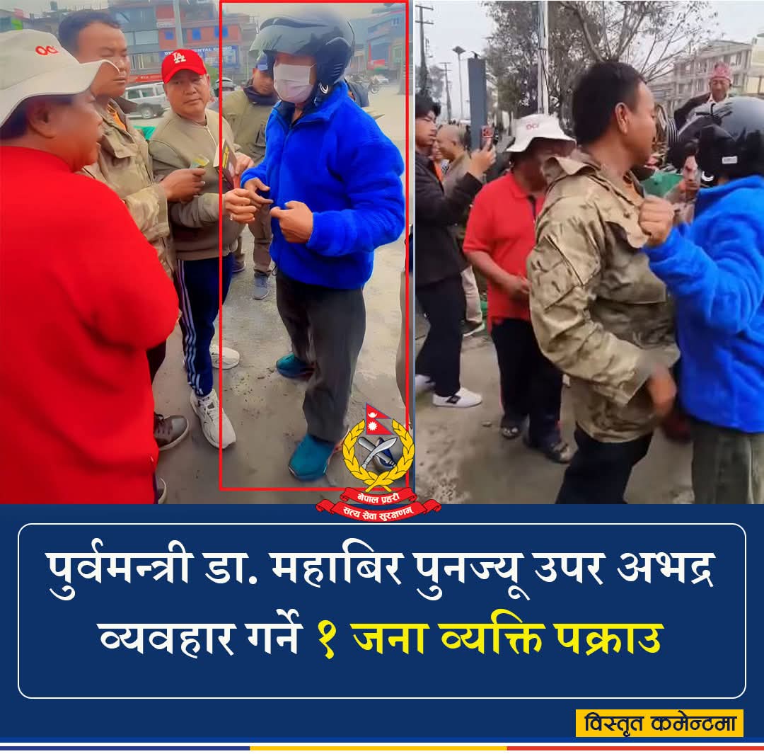 पोखरा ।कास्की प्रहरीले डा. महावीर पुनमाथि अभद्र व्यवहार गर्ने एक व्यक्तिलाई पक्राउ गरेको छ।