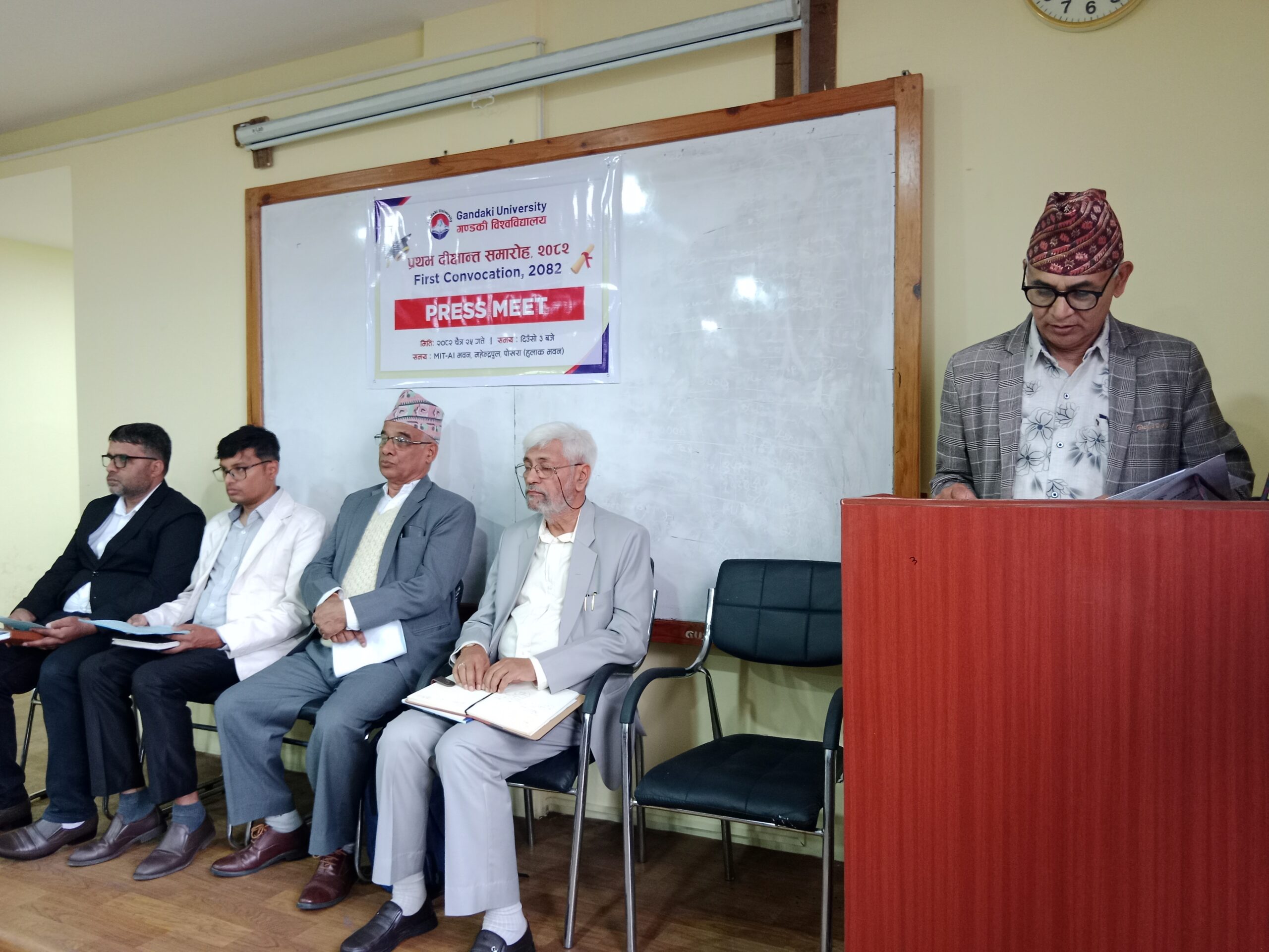 पोखरा। गण्डकी प्रदेश सरकारले स्थापना गरेको गण्डकी विश्वविद्यालयले आफ्नो शैक्षिक यात्राको महत्वपूर्ण उपलब्धिका रूपमा पहिलो दीक्षान्त समारोह आयोजना गर्ने भएको छ। विश्वविद्यालयले २०८२ चैत २८ गते पोखरा–३२ मालमुलस्थित आफ्नै प्राङ्गणमा समारोह आयोजना गर्न लागेको आज पत्रकार सम्मेलन आयाेजना गरेर जानकारी दिएकाे हाे ।