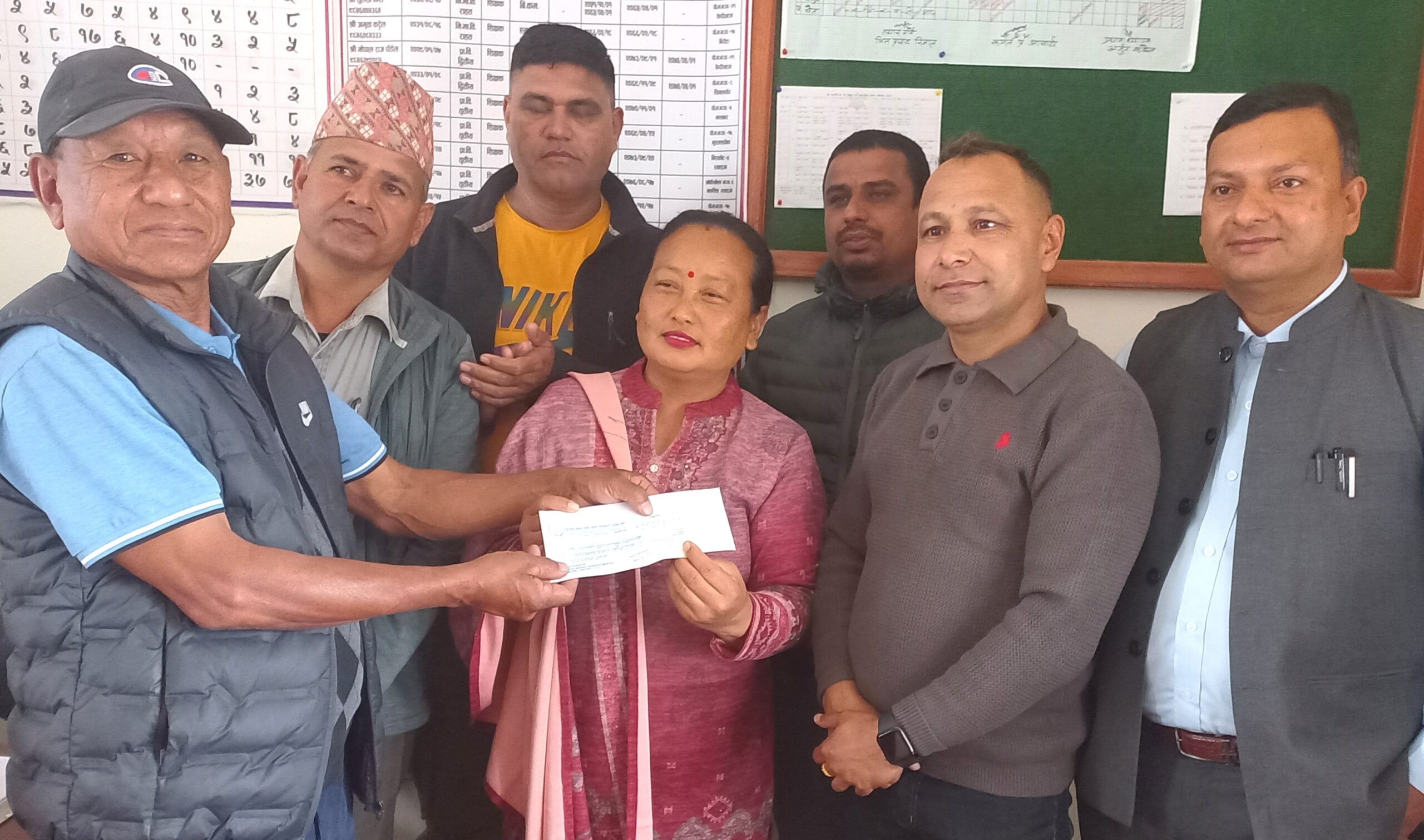 चैतको ७ गतेदेखि सञ्चालन हुन गैरहेको एसईई परिक्षालाई व्यवस्थित र मर्यादित वनाउने उदेश्यका साथ विद्यालयमा आयोजित स्थानीय संघसंस्था, सल्लाहकार सहितको बैठकमा मन्दिर व्यवस्थापन समितिका अध्यक्ष नरेन्द्र शर्मा भण्डारीले उक्त रकम बराबरको चेक विद्यालय व्यवस्थापन समितिका अध्यक्ष नगेन्द्र गुरुङलाई हस्तान्तरण गर्नुभएको हो ।